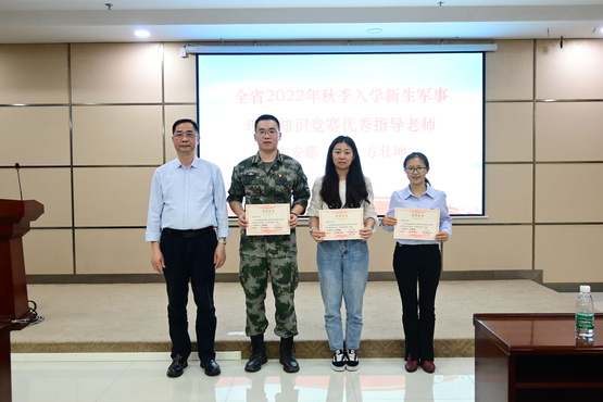按照国务院、中央军委和省、市、区征兵工作的有关要求,我校已顺利完成2022年“一年两征”的征兵工作任务。会议上,张广金宣读了《2022年征兵工作先进单位和个人》的相关通报,并对2022年全省秋季入学新生军事理论知识竞赛中获奖的师生进行表彰。电子系、计算机系、软件工程系、数码媒体系、学生处获得征兵工作先进单位,陈映宏等十六名同志获得征兵工作先进个人,潘宇铖 、龙钰铤获得全省2022年秋季入学新生军事理论知识竞赛优秀学生,宋安娜 、张琰 、方壮坤获得全省2022年秋季入学新生军事理论知识竞赛优秀指导老师。刘友坤为2022年全省秋季入学新生军事理论知识竞赛中获奖的师生和2022年征兵工作先进单位进行颁奖,张广金为2022年征兵工作先进个人进行颁奖。
