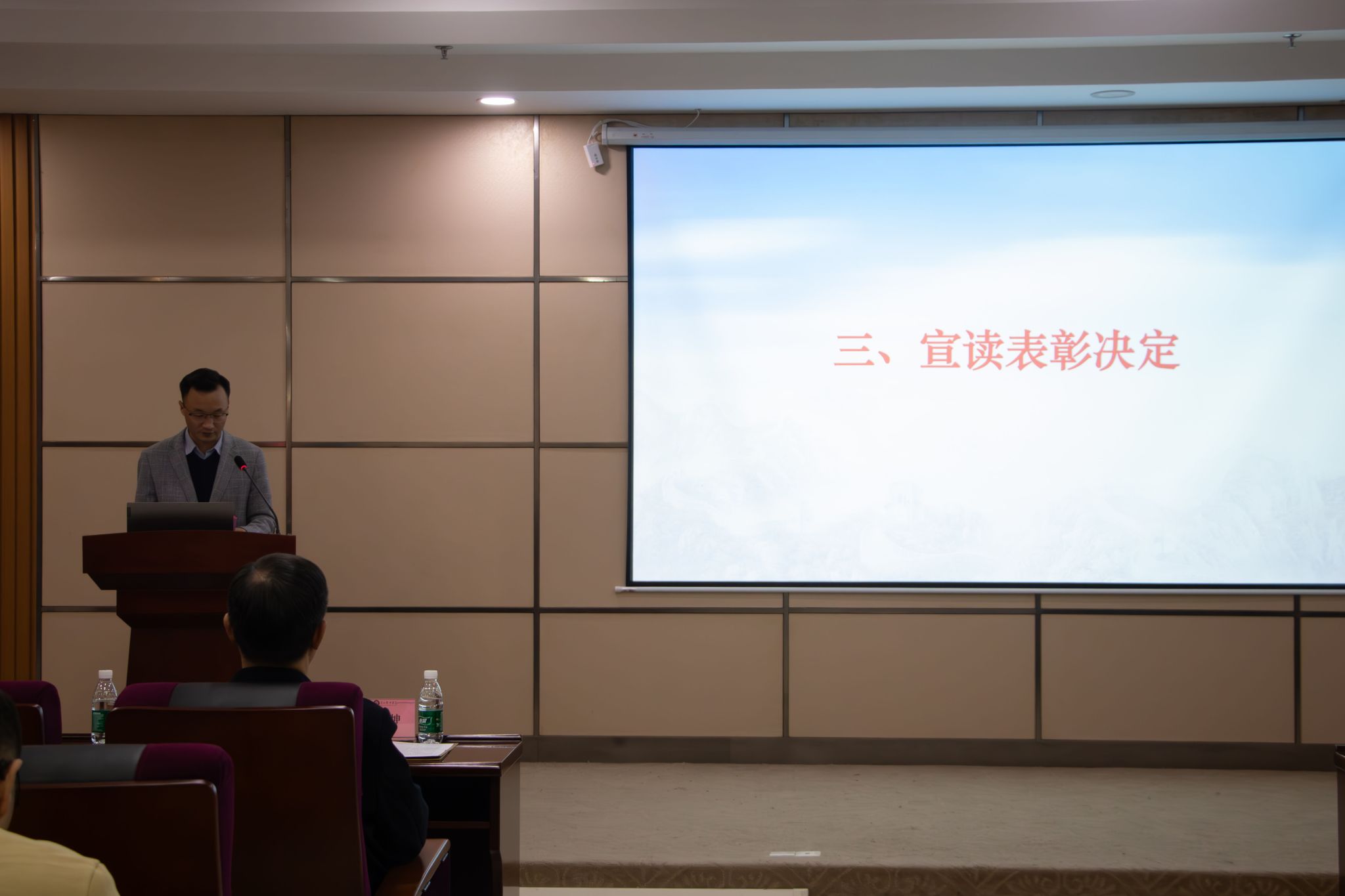 会上两名2024年征兵先进个人代表进行分享征兵工作经验。林培增同学分享退伍复学后积极参加征兵宣传工作方法,积极动员身边同学积极携笔从戎。周戈燕老师分享了在软件工程系担任征兵工作负责人期间的工作成效以及方法,有效地推动了征兵工作的开展。