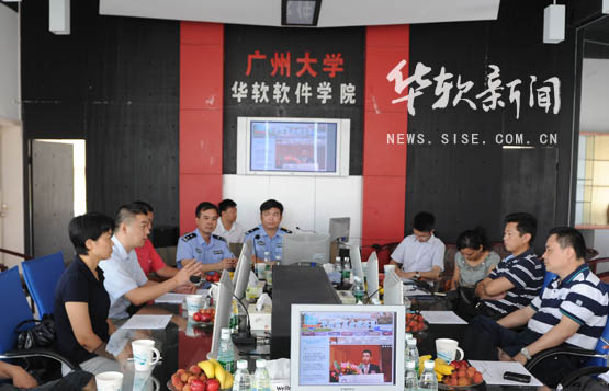 6月25日,广州市平安办一行10多人在市综治办副主任、市平安办主任杨滨,副主任程秀忠的带领下莅临我院考察调研校园平安创建工作。从化市市委常委、政法委书记刘宗静,副市长、市公安局局长刘岗,开发区派出所所长叶烈彪,学院院长何大进,党委书记徐元平等陪同调研。