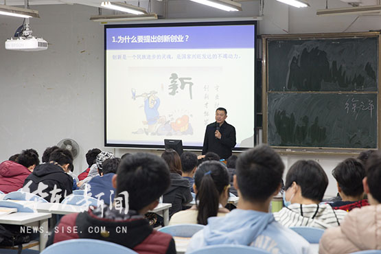 3月16日上午,我院党委书记徐元平围绕“创新创业”主题,在D101为同学们上新学期第一堂思政课。