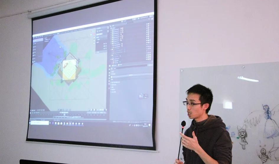 王德立师兄讲述关于技术美术的知识。技术美术在普通美术的基础上增加了其他专业要求,如高数和代码。他强调了高数,线性代数等课程的重要性,掌握好相关知识将会对自身就业发展大有帮助。当下的热门制作是游戏开发方向。TA则是开发期间负责美术和程序的沟通途径,王德立师兄给同学们展示该公司的各种TA实例。同学们从实例中拓宽了自己的知识面。
