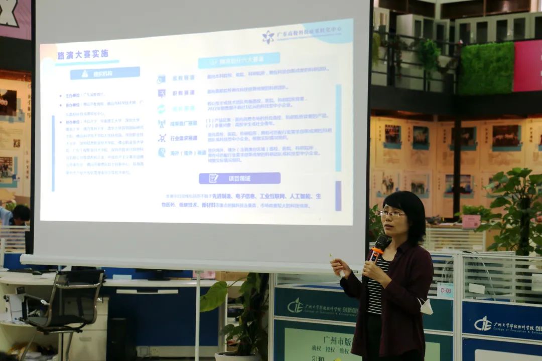 宣讲会上,广东高校科技成果转化中心资深技术经理人张红泉作大赛宣讲,她从大赛赛道划分、赛程安排、奖项设置、扶持政策、科技成果转化机制等方面对本次赛事和成果转化政策进行解读,并为各团队成员答疑解惑。