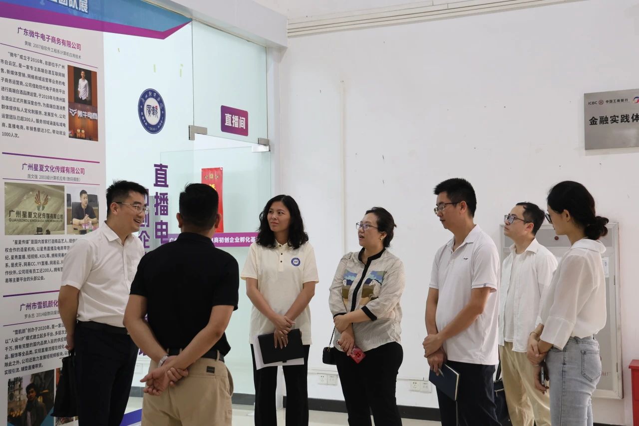 区科工商信局、省孵化协会领导一行先后参观了我校直播电商初创企业孵化基地,深入了解了直播基地入孵项目的基本情况、主营业务、经营现状等情况,并走访参观了广软国家级众创空间在孵创业团队,与GEOM团队、聚星团队、硬虎团队等创业团队成员进行了沟通交流,各团队成员积极介绍本团队运营项目,充分展示项目的特色和亮点,获得了区科工商信局、省孵化协会领导的高度赞扬认可。
