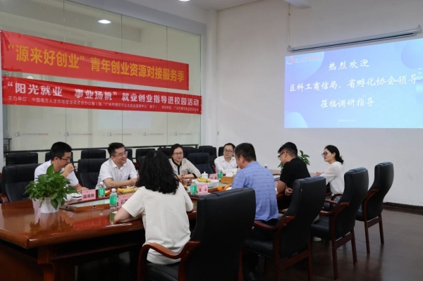 5月9日,从化区科技工业商务和信息化局局长张翼翔、科长陈明辉,广东省科学技术情报研究所创业孵化促进中心主任、广东省科技企业孵化器协会常务副会长何静及助理研究员梁海锋一行到访我校国家级众创空间调研指导,宣贯广东省大学科技园申报建设相关政策,指导学校创新创业教育工作,我校副校长袁志、创新创业学院院长吴伟生、院长助理农凤清及学院相关教师热情接待。