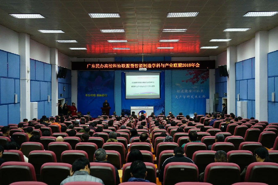 1月5日,广东民办高校科协联盟暨智能制造学科与产业联盟2018年会在我院隆重举行。广东省科协党组成员、专职副主席、省高校科协联盟理事长冯日光,广东省科协组织联络部部长朱海龙、广州市科协学会学术部部长黄有琛、从化区科协副主席郑巍、从化区科工商信局副局长董小星、广东民办高校科协联盟主席陈文冠、广东民办高校联席会副主席刘国生、广东省民办教育协会副秘书长曾庆鸿等领导嘉宾出席大会。广东省内31所民办高校的副校长、科协主席和科研处长,11家企业代表等逾300人参加了本次大会。会议由学院科研处处长袁志主持。