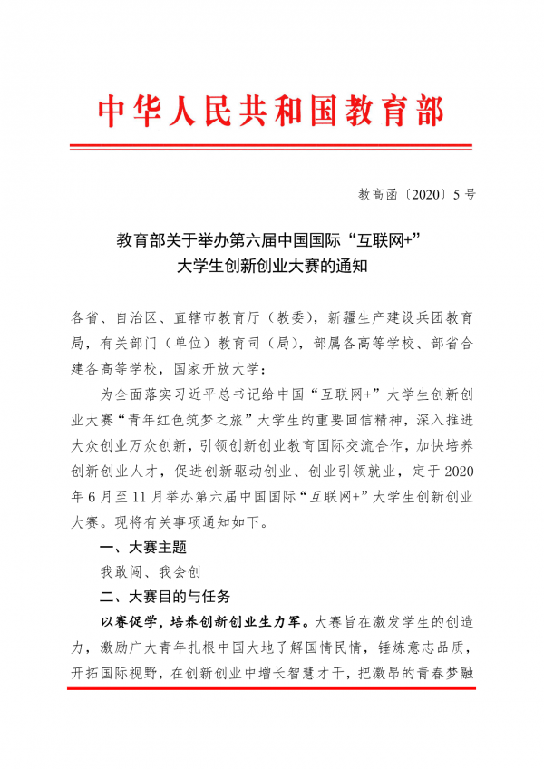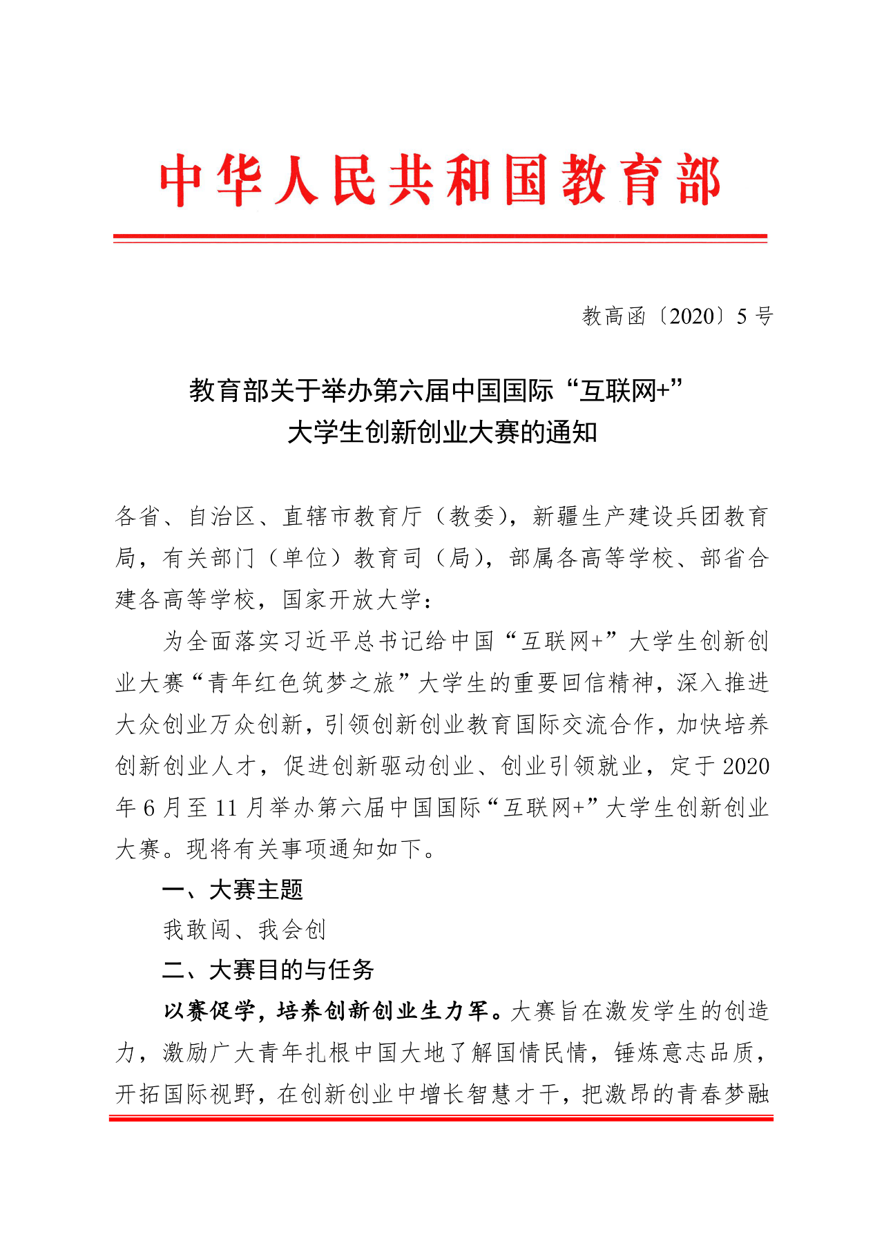 第六届中国国际“互联网+”大学生创新创业大赛的通知
