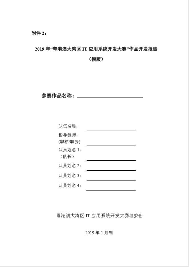 附件2:2019年“粤港澳大湾区IT应用系统开发大赛”作品开发报告(模版)