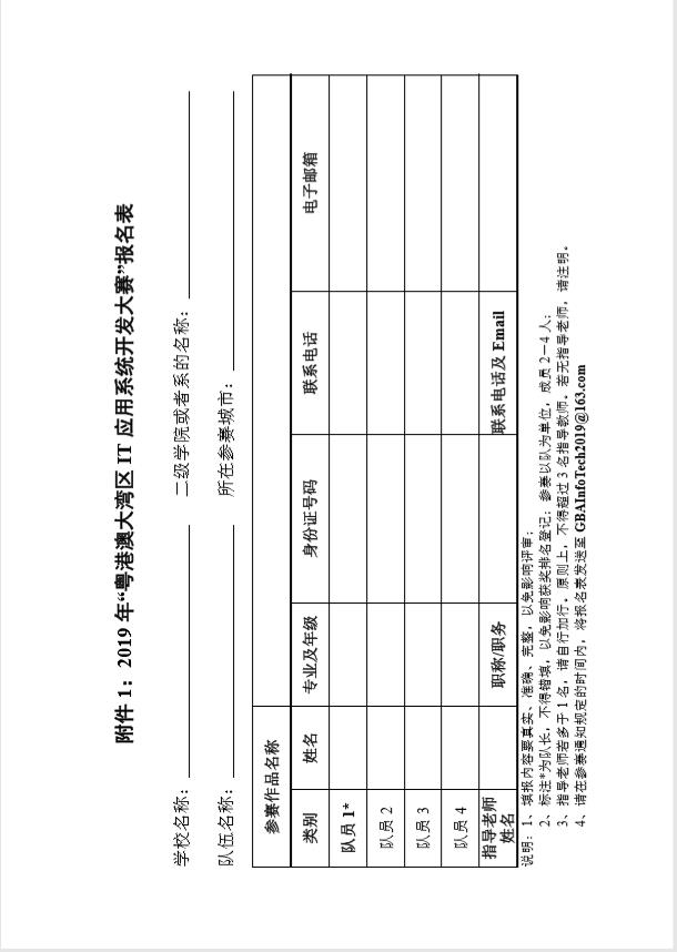 附件1:2019年“粤港澳大湾区IT应用系统开发大赛”报名表