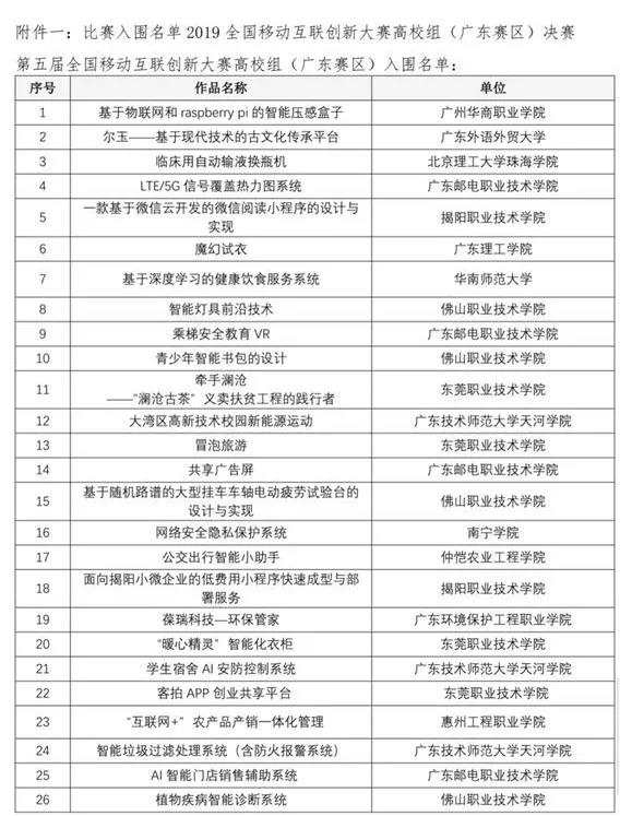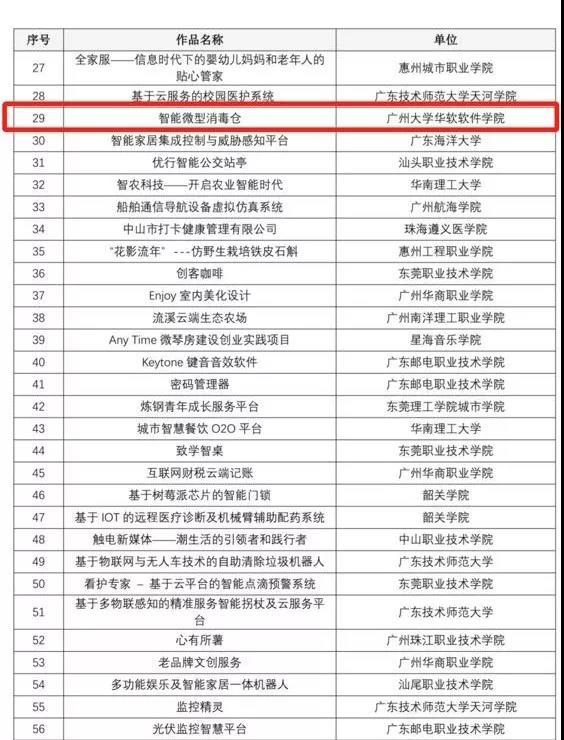 近日,2019全国移动互联创新大赛高校组(广东赛区)决赛入围名单公布,218个参赛项目经过盲评、专家集体评议两轮筛选,评选出共82个项目进入广东赛区决赛。其中,华软学院的“智能微型消毒仓”、“美益鲜”、“互联网+医疗养老”三个项目成功入围广东省决赛。