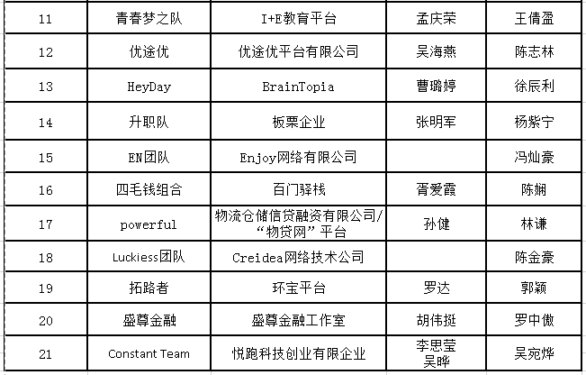 现将第二期大学生创业团队入驻创新创业孵化基地的名单公示如下:(21个团队)(排名不分先后)