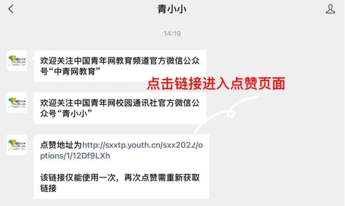 活动期间,进入中国青年网“青小小”(ID:zqwqxx)微信公众号,点击菜单栏“点赞-镜头下的三下乡”即可参与点赞。