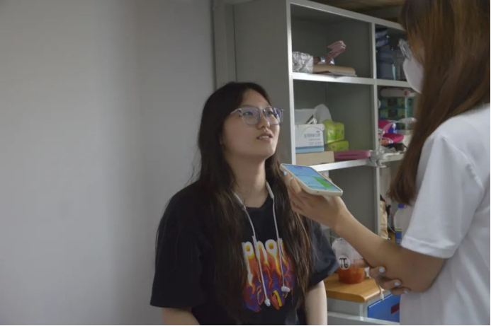 A:“我觉得学校志愿者挺好的,就比如说我行李真的特别特别重,然后她们也帮我搬上来,帮助到我很多。”