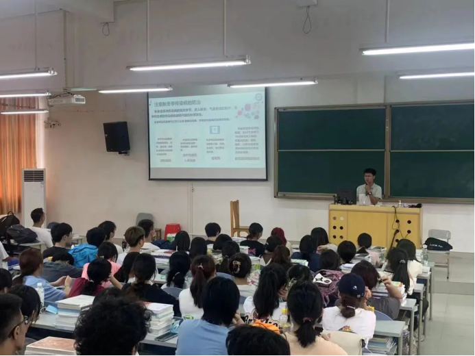 课程开始前,由导生们带领新生进行了入学后的第一次全员核酸检测,陈博文老师在课程中向新生同学们着重讲解了卫生与疫情防控的重要性,虽然现在疫情已经有所缓解,但是疫情防控工作刻不容缓。课堂上,同学们精神饱满、秩序良好。在新学期第一课课堂上展现出了良好的精神风貌。