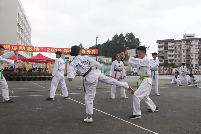 开幕式中场,跆拳道协会及街舞协会的成员受邀上场表演,让在场师生嘉宾一睹了一场视觉盛宴。他们引人注目的表演正号召着学生们走出宿舍参与到体育运动中,锻炼身体,充实大学生活。