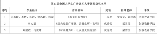 此次大赛的佳绩,不仅是对学院教学成果的肯定,更是激励全体师生继续追求卓越的动力。创意设计学院将以此为契机,持续深化教育教学改革,优化人才培养机制,鼓励更多学子在国家级舞台上展现风采,为社会输送更多具有创新精神和实践能力的高素质广告艺术人才。(供稿:籍潇鹏、梁雪莹、郭明晖、李列锋)
