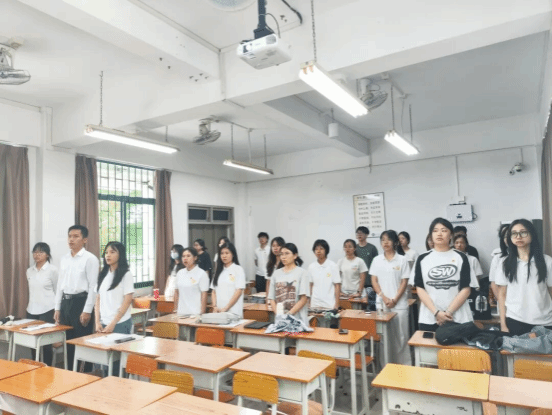 国歌奏唱完毕,发展对象黄国杜、黄诗琪、于丽梅三名同志依次汇报情况。他们神情坚定,言语恳切,从对党的理论知识学习讲起,深入剖析入党动机。黄国杜同志分享了在志愿服务中受党员奉献精神感染的经历;黄诗琪同志结合专业学习成长,讲述党的思想引领;于丽梅同志以生活小事阐述对党的宗旨的践行。三人还汇报了思想、学习、工作和生活表现,诚恳指出不足与努力方向。