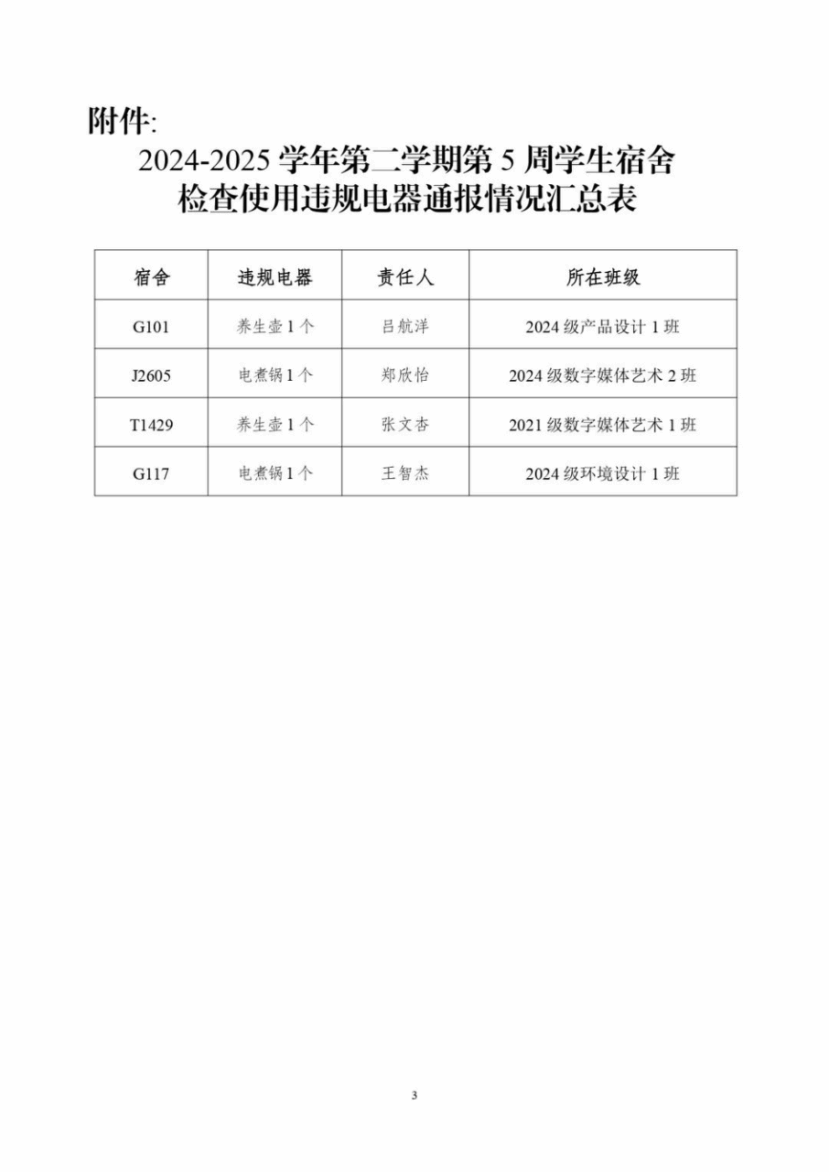 关于给予使用或持有违规电器的 4 间宿舍及责任人批评的通报