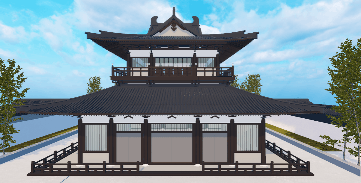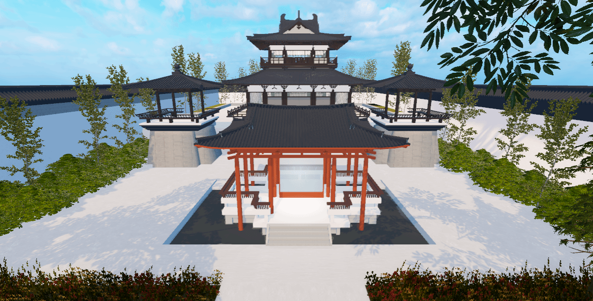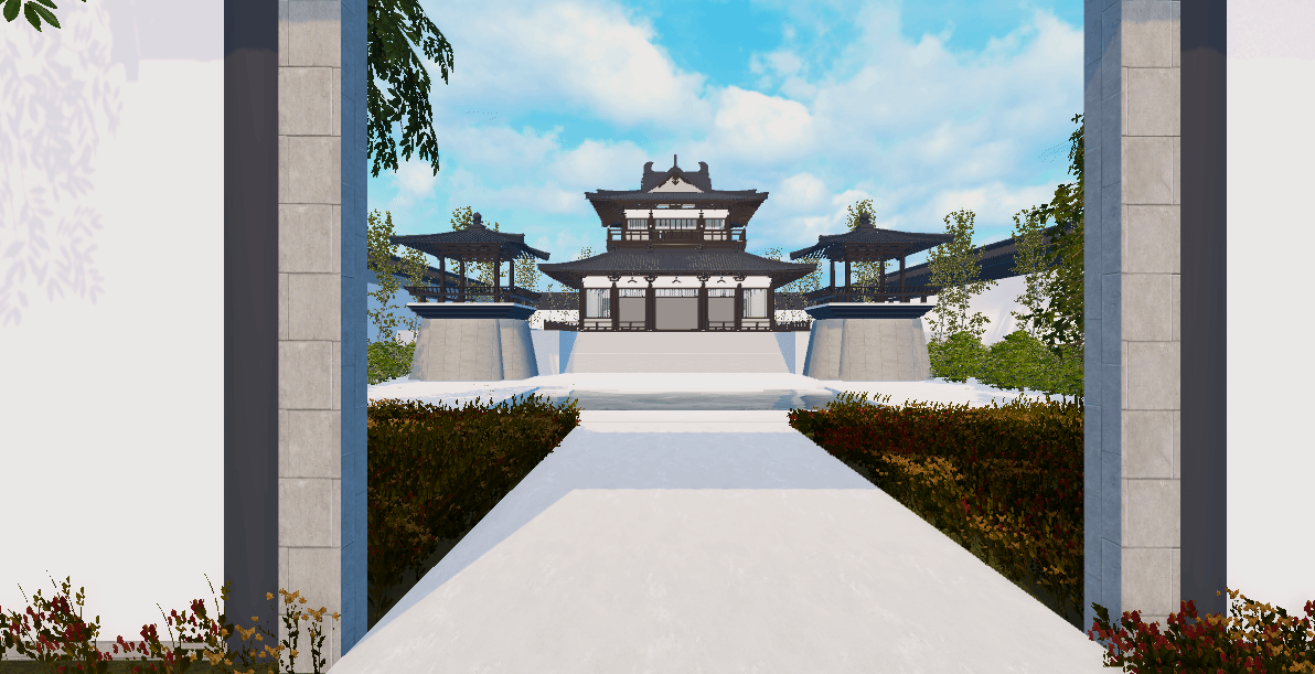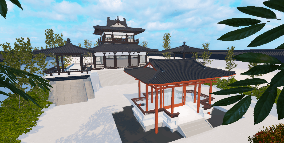 本游戏参考广州新文化馆里的 “曲艺园”,以 “十里红云一湾水,八桥画舫十六亭” 为核心理念,融合岭南水乡园林与传统建筑空间,形成 “园中园” 布局。“曲艺园” 主要作为粤剧、音乐等表演空间,其建筑灵感源自粤曲《荔枝颂》