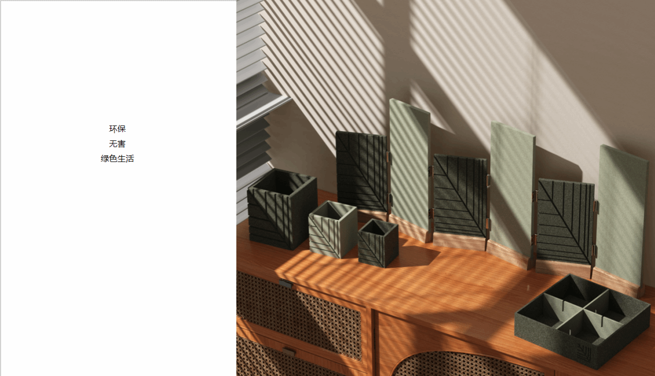 随着国民环保意识的增强,人们越来越倾向于选择环保、可持续的产品。本方案以茶废弃物材料结合家居用品形态助力绿色环保事业,可以促进资源化利用,从而更好地减少污染排放,避免多种环境问题,更好地实现人与自然和谐共生。作者为本次毕设所设计的办公家居产品赋予了“茶弥”的名字,顾名思义即是茶的元素弥漫着整款家居产品,通过对比筛选以及工艺处理过后的绿茶渣弥漫着每一款产品,通体自带淡淡茶香,促进茶废弃物的资源化利用,满足数量逐渐增加的环保主义者的需求,不仅美化了社会生活居住或办公的环境,更在潜移默化中引导着人们关注环保、珍惜资源。