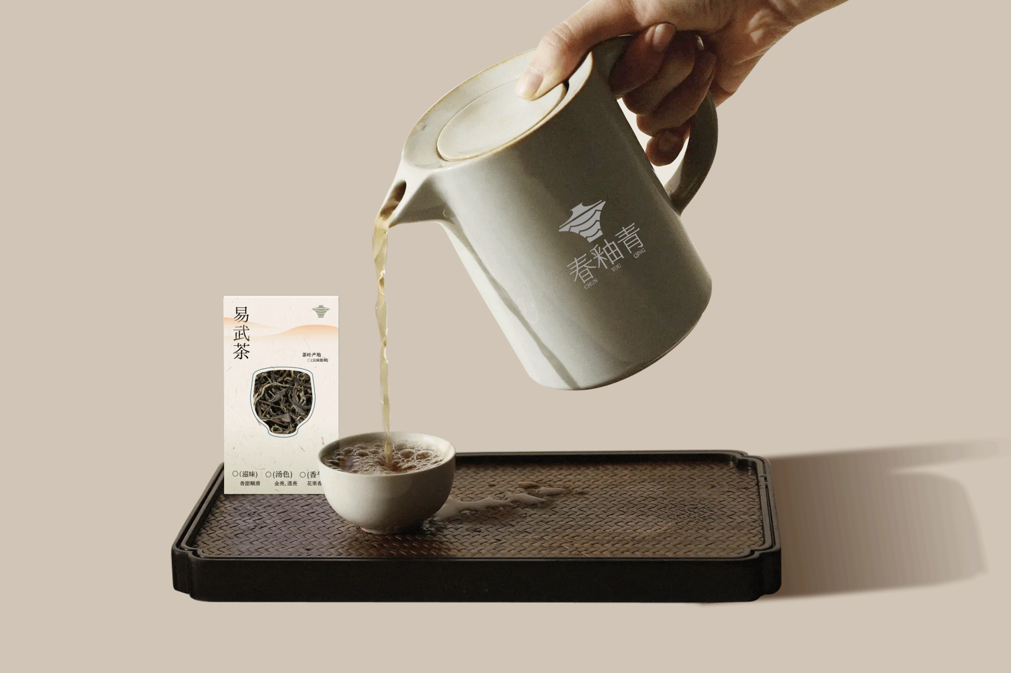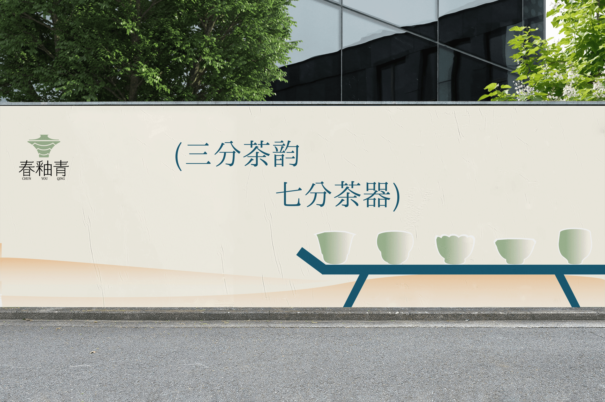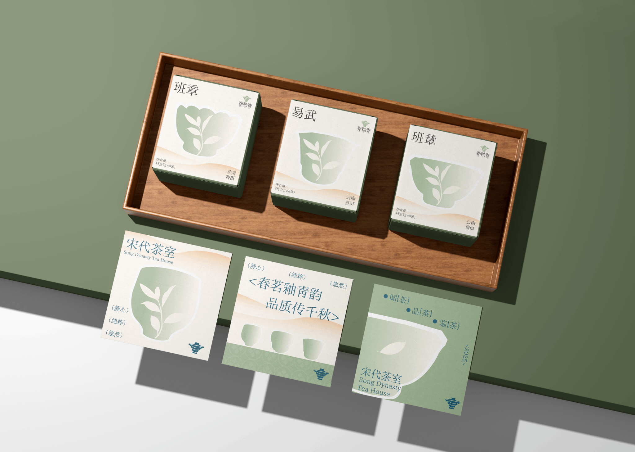 宋代茶室品牌名字为“春釉青”“春”象征着新生与希望,在茶文化中,春天也是新茶采摘的最佳时节,春釉青坚持采摘春茶是品牌坚守的初心。“釉”,釉 上彩是中国古代瓷器的一种装饰技法,色彩斑斓且富有层次, 象征茶室在传承宋代茶文化的同时,也注重创新与艺术的融合,为顾客提供视觉与味觉的双重享受, 让人联想到宋代著名的汝窑青瓷,其色泽温润如玉,有冰裂之感给人以宁静之感。 “青”只此青绿灵感来源于宋代王希孟的《千里江山图》,代表着一种清新脱俗,雅致高洁的美学追求,让顾客在品味云南茶香的同时,领略宋代茶文化的深厚底蕴与艺术之美,在中华文化中,“青”通常指代一种介于蓝绿之间的颜色,它既 体现了自然之美,也让人联想到鲜采茶叶的青。