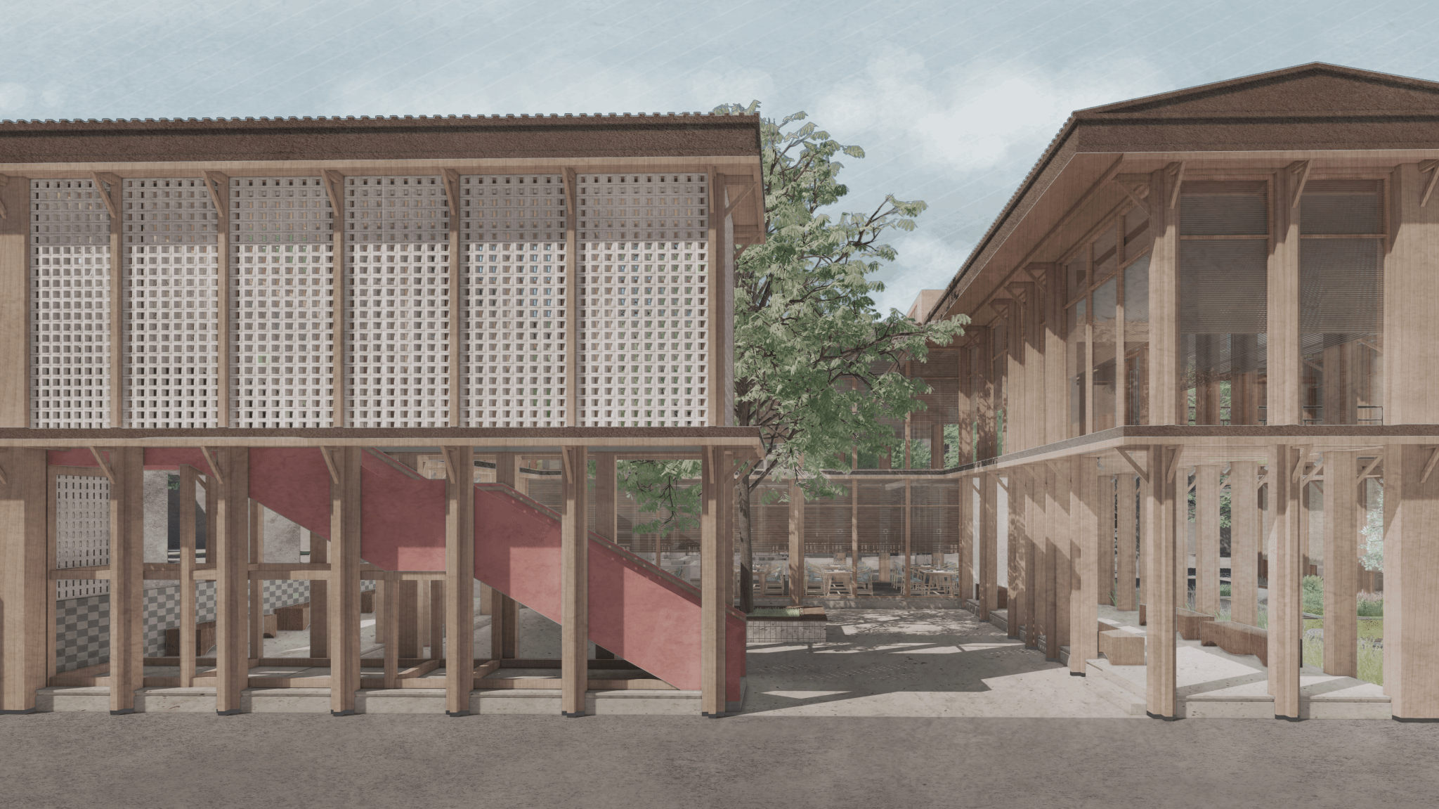 此次方案设计基于城中村社区空间改造,环境问题以及社区居民交流不密切是现如今城中村发展的重点。公共空间可以充当起空间媒介将人与人联系起来,一个具有记忆点的公共空间可以加强人们的情感共鸣拉近人与人的距离,也能通过空间展示出当地的地域文化。空间设计的主题为《槎意》,通过融入村落地域文化与通过思考人类的感官行为体验相结合的空间设计手法营造出更多元化的社交空间,从而满足不同人群的生活需求。通过不同空间节点的设计手法让身处空间的体验者能得到多重的心理体验。