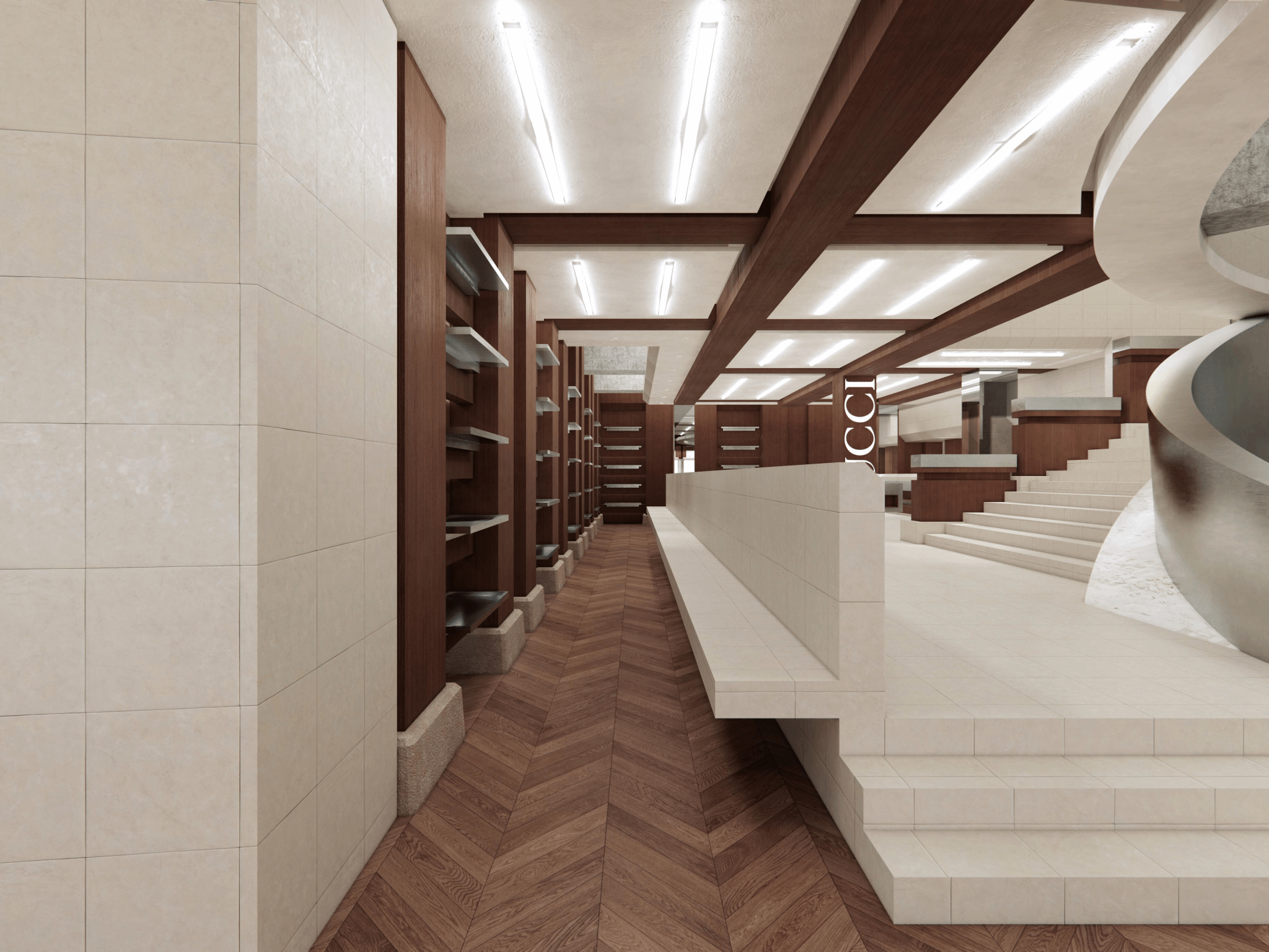 主题名称为虫洞,以空间形态使人们仿佛置身于时空错置借“虫洞穿越”作为载体来表述空间,在以前奢侈品牌与日常品牌在一起好似虫洞穿越到另一个世界才会发生的事情。周边的时间流速也得以变慢犹如虫洞穿越借此回归以前舒适优雅的购物体验,让空间回归空间本身,而不是嫁接于社交网络存在的短暂消费载体希望给顾客带来烟火里的松弛感。结合品牌本身的理念和对线下零售体验方式的创新,构成了一个在未知中探索的故事。