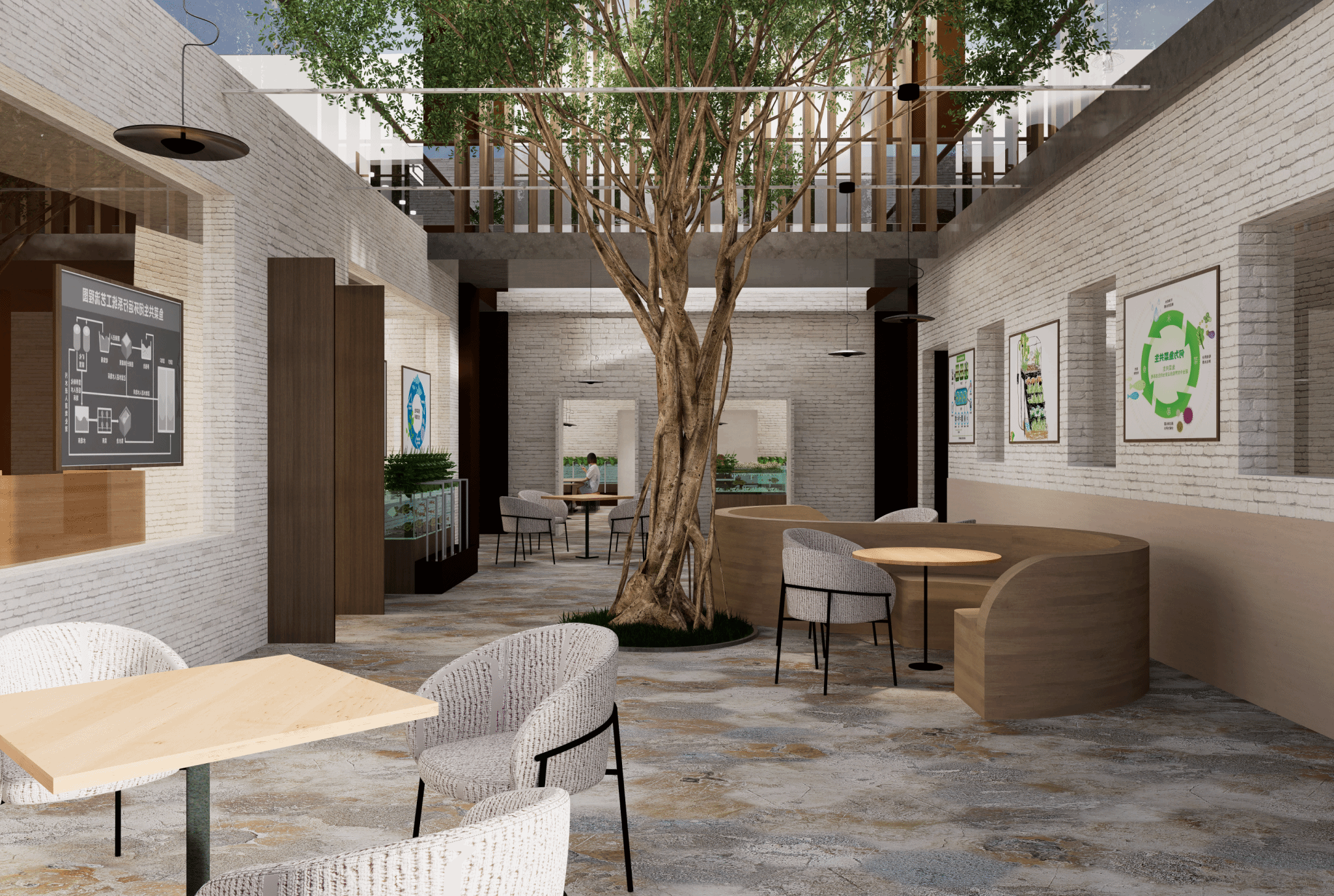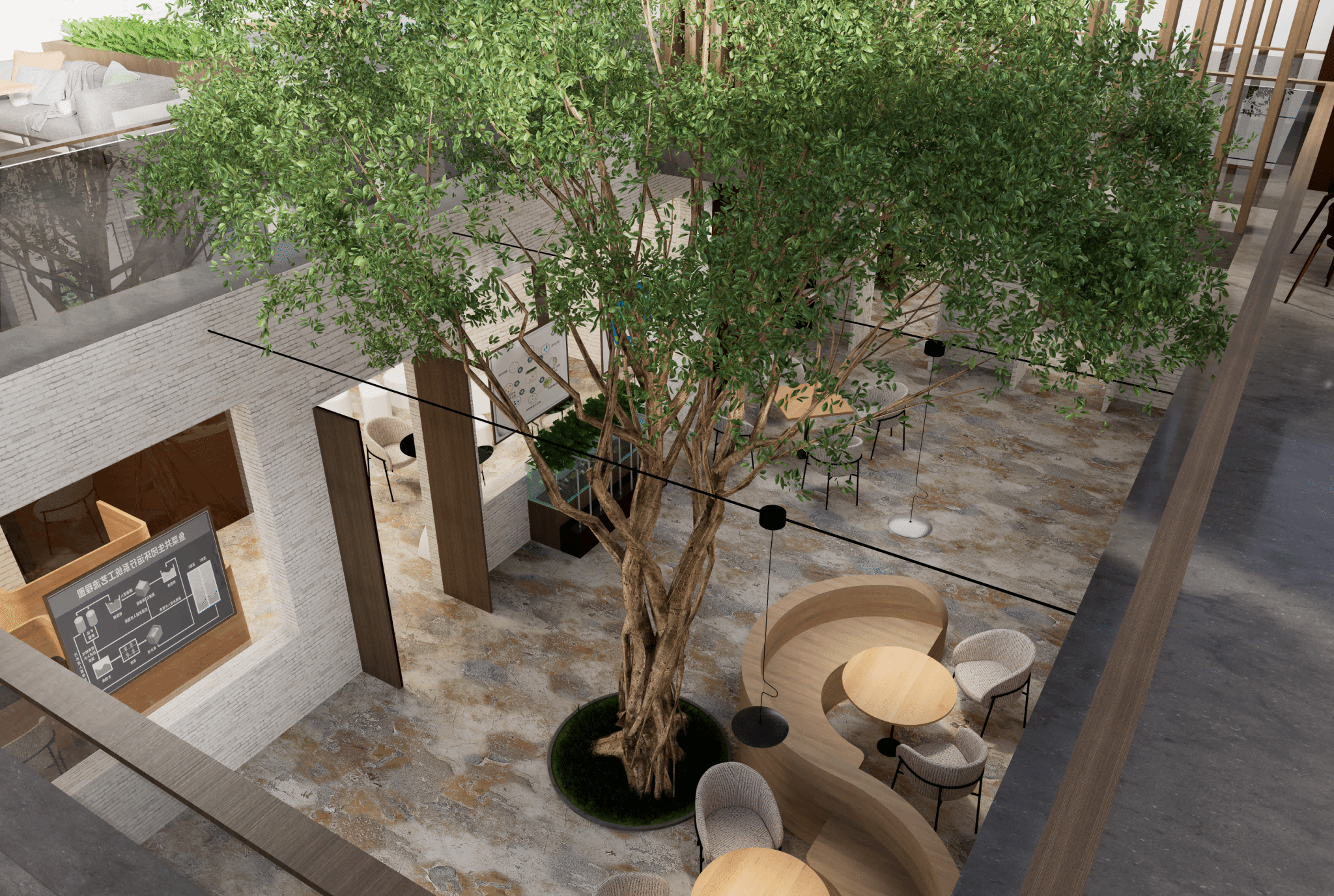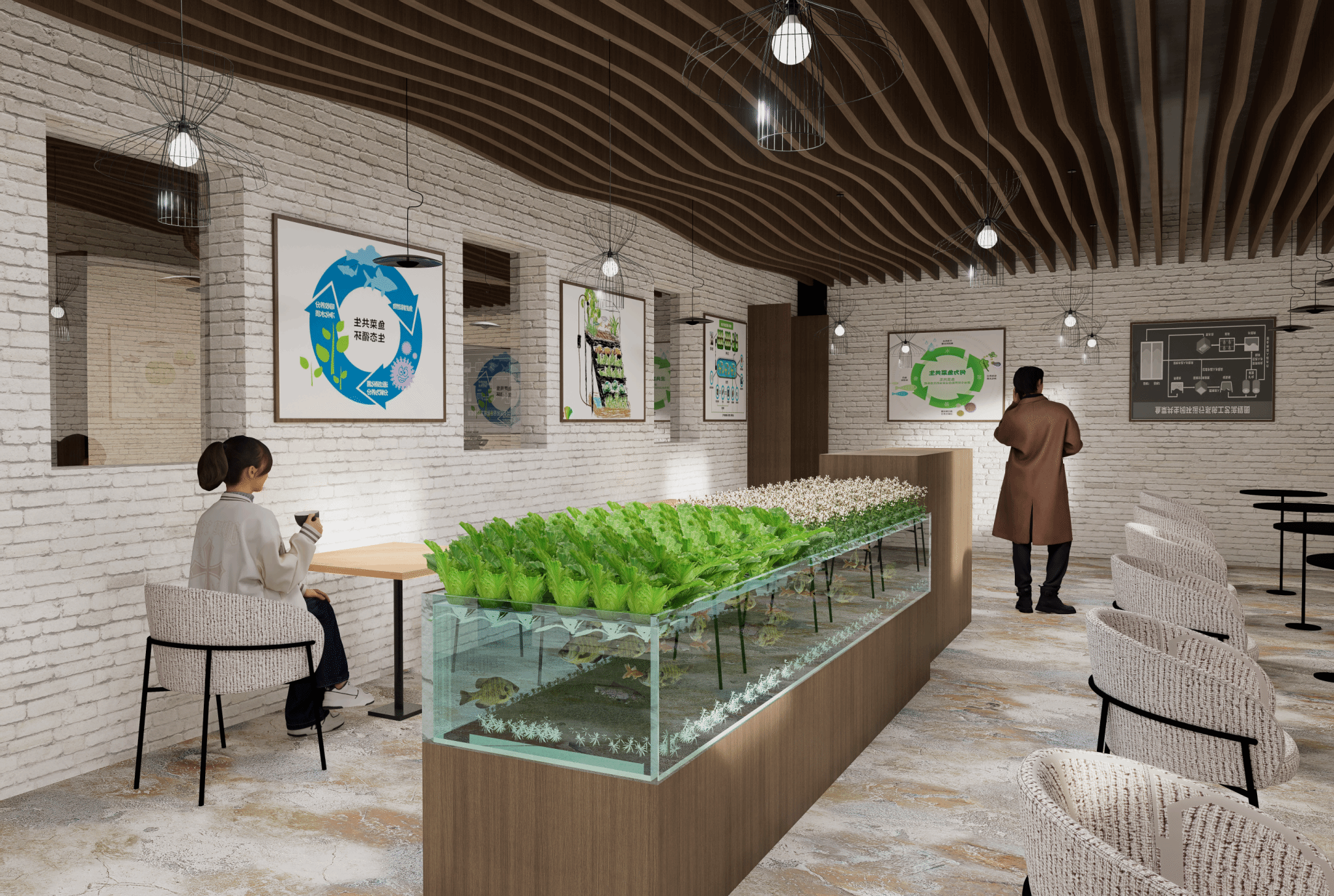 本次设计《简知书咖》咖啡书吧商业空间,该店选址位于广州市永庆坊旅游区,空间设计以1200书吧为品牌,结合咖啡馆的休闲氛围与图书馆的文化属性,探讨咖啡书吧中的应用及其对顾客体验的影响。室内空间功能布局内部空间分为开放式餐饮区和封闭式的包间,中央设有吧台;在空间功能上不局限于售卖,增加鱼菜共生系统使消费者可以通过书吧了解科学知识文化;在内部空间设计上运用情景故事线带入,运用柯布西耶建筑五要素中的底层透空,以达到生态循环状态,使整个空间更为灵活让人们享受大自然的这一刻。装饰风格简约现代风,营造自然、健康的氛围,门头简洁的设计,空间采用天然材质如木头、石头等,融合植物设计,体现健康绿色的形象。外立面让顾客可以看到店内的环境,增加透明感。呈现具有岭南文化风情的咖啡书吧商业空间,在推广1200品牌同时传播广州传统文化,鱼菜共生的理念所在。