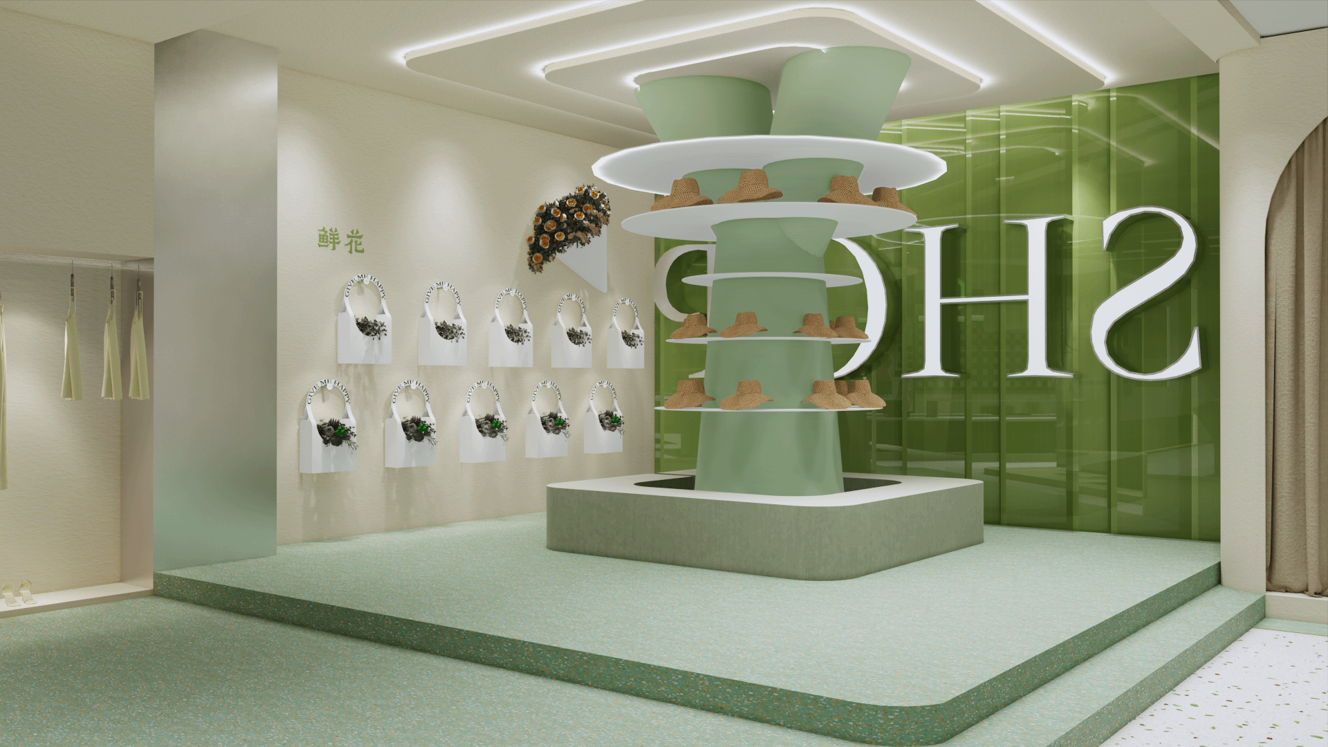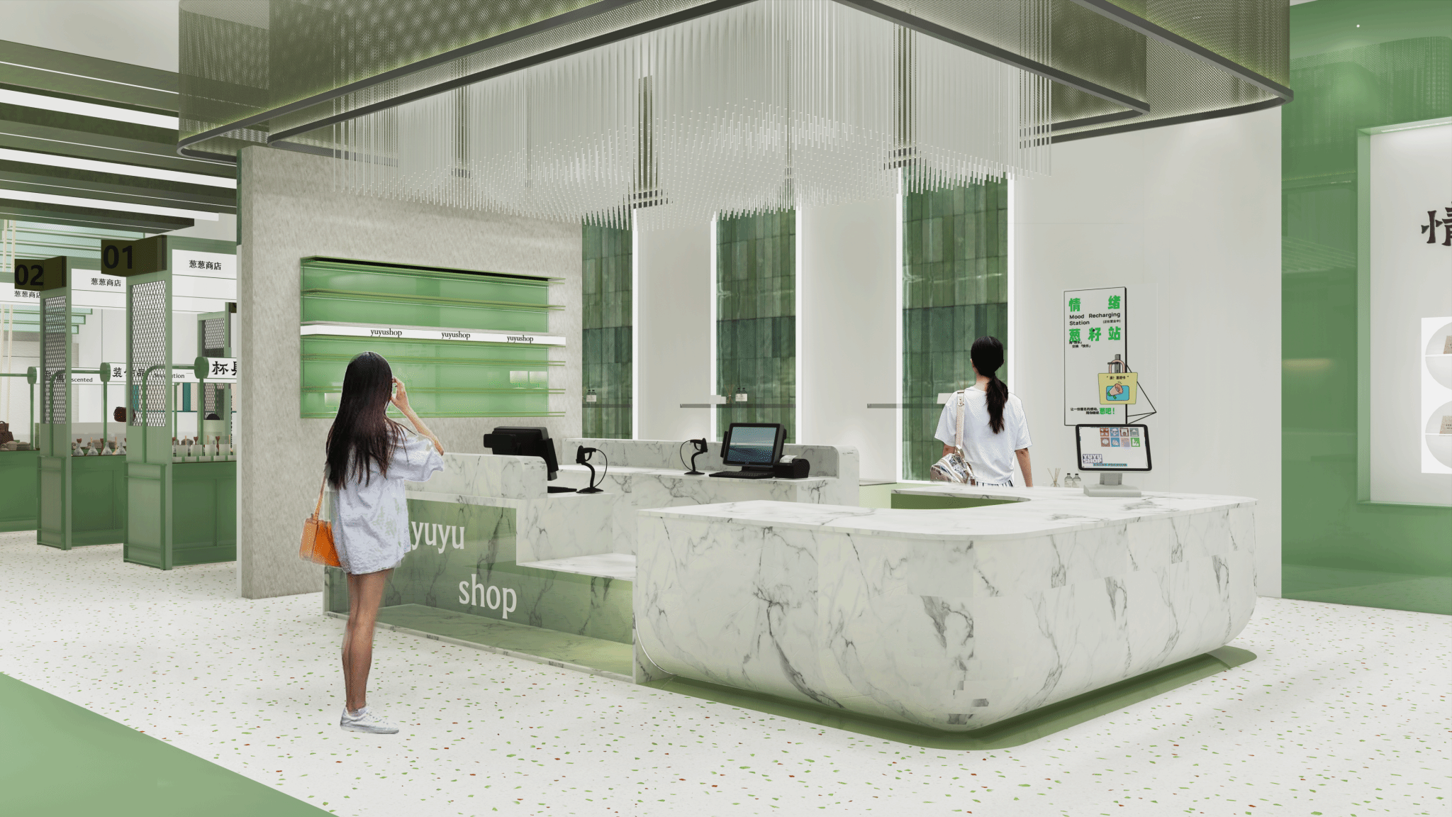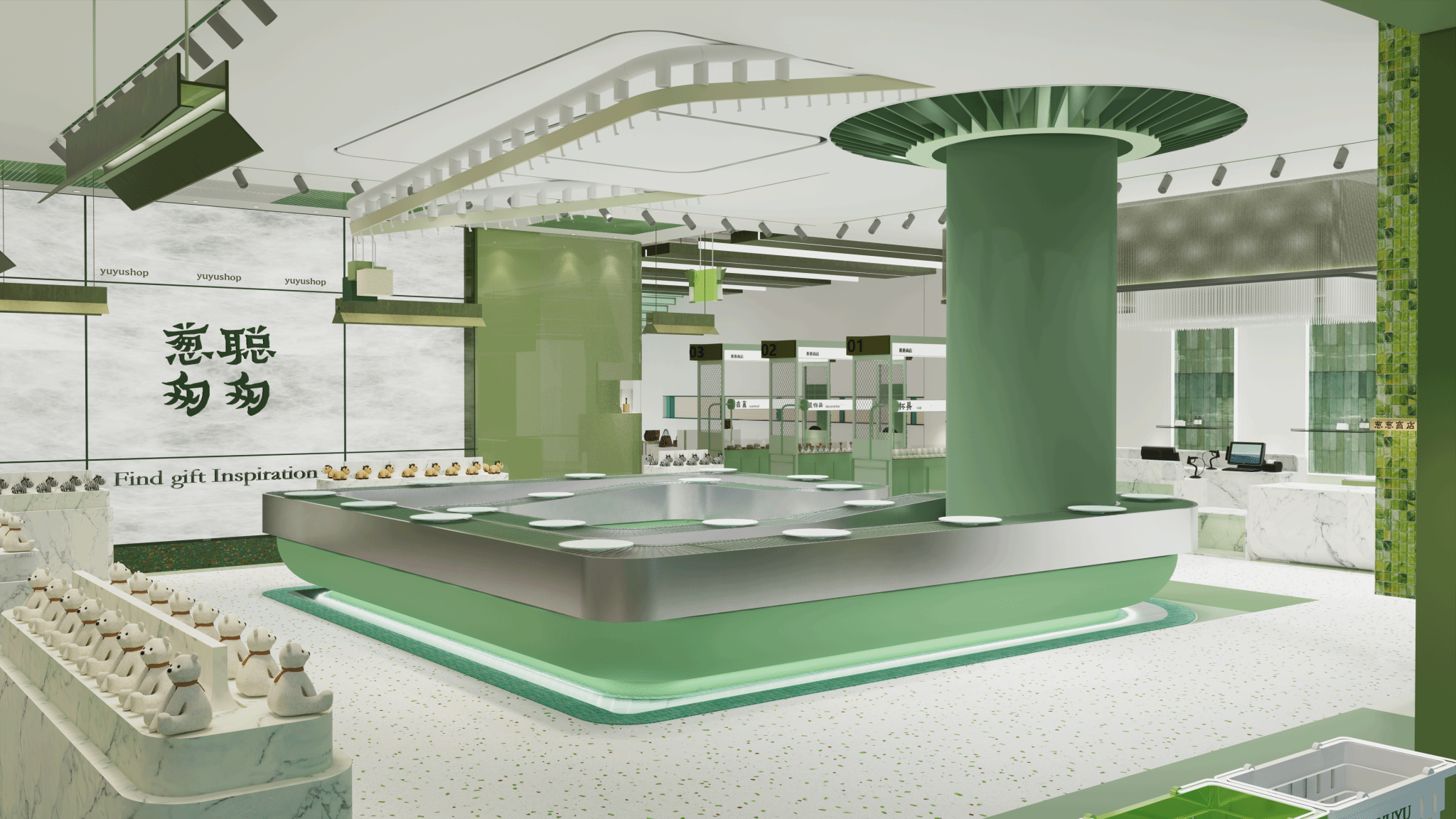 本次“葱聪匆匆商业空间设计”作品从沉浸式体验、色彩氛围、情绪感受等方面讲述礼物带给人们不同情绪感受之间的故事。以“葱的生长”为灵感,将复古感与现代自然感结合。希望人们能在匆忙的都市奔流中能有短暂的归属与生命冲力的沉浸式体验空间,找到属于自己的人生礼物。以“葱的生长过程比喻人的成长过程”作为零售空间的故事引导线,结合葱所带给人的生命冲力的情绪感受以及零售时代4.0的概念进行设计。再结合当地特色,品牌特点打造富有归属感与活力感的沉浸式体验的商业空间。