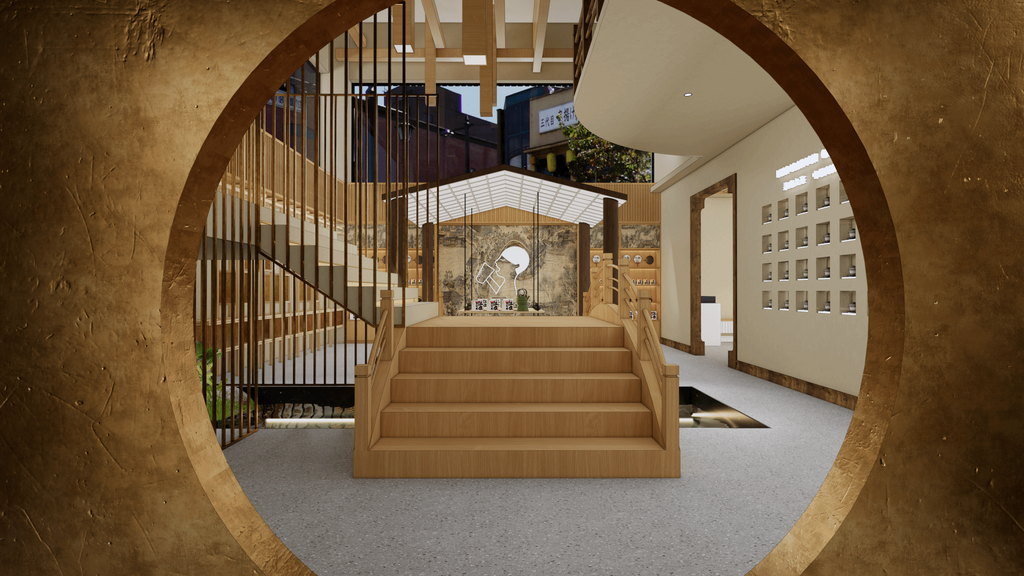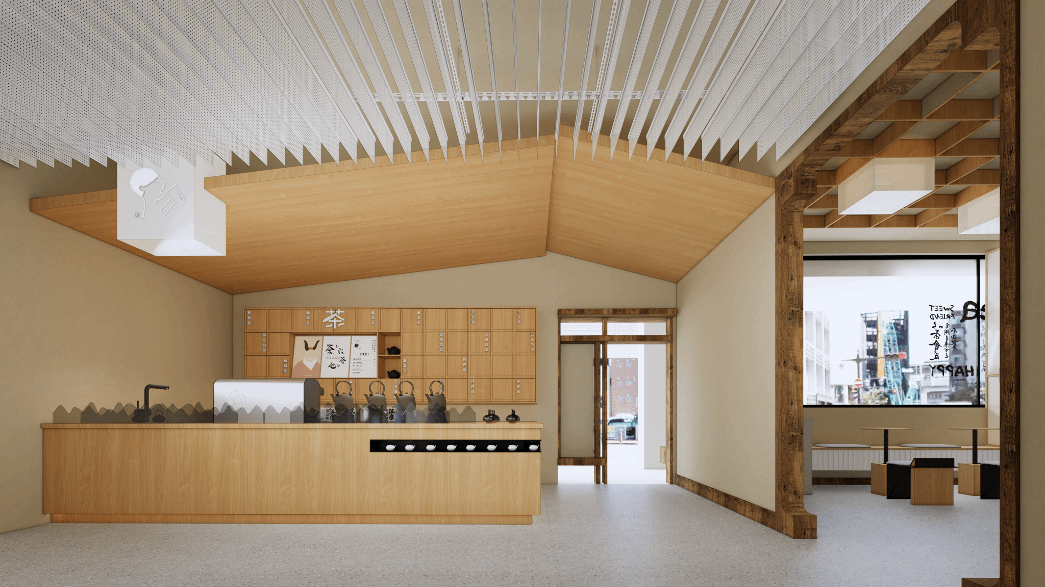 本次设计以《清明上河图》为主题元素提取画面四个章节的重点部分转译至空间将喜茶与宋代茶文化相结合,整体风格为新中式风格总体布局方面满足产品售卖与文化传播的需求本次设计将整个卖场空间分为产品售卖区品味茶区、文化科普区、交流区、DIY区、茶室、打卡区等等打造一个深入的茶文化概念店。