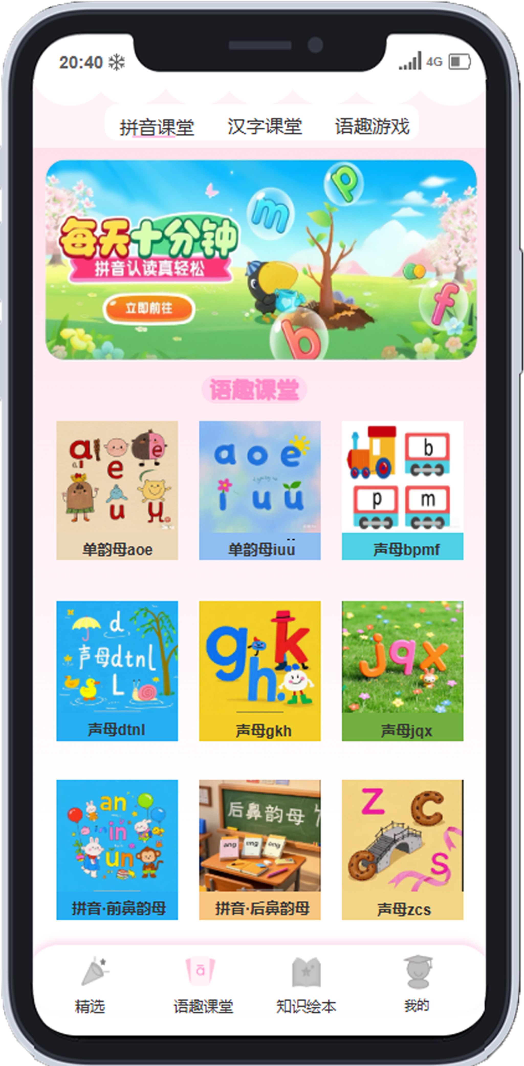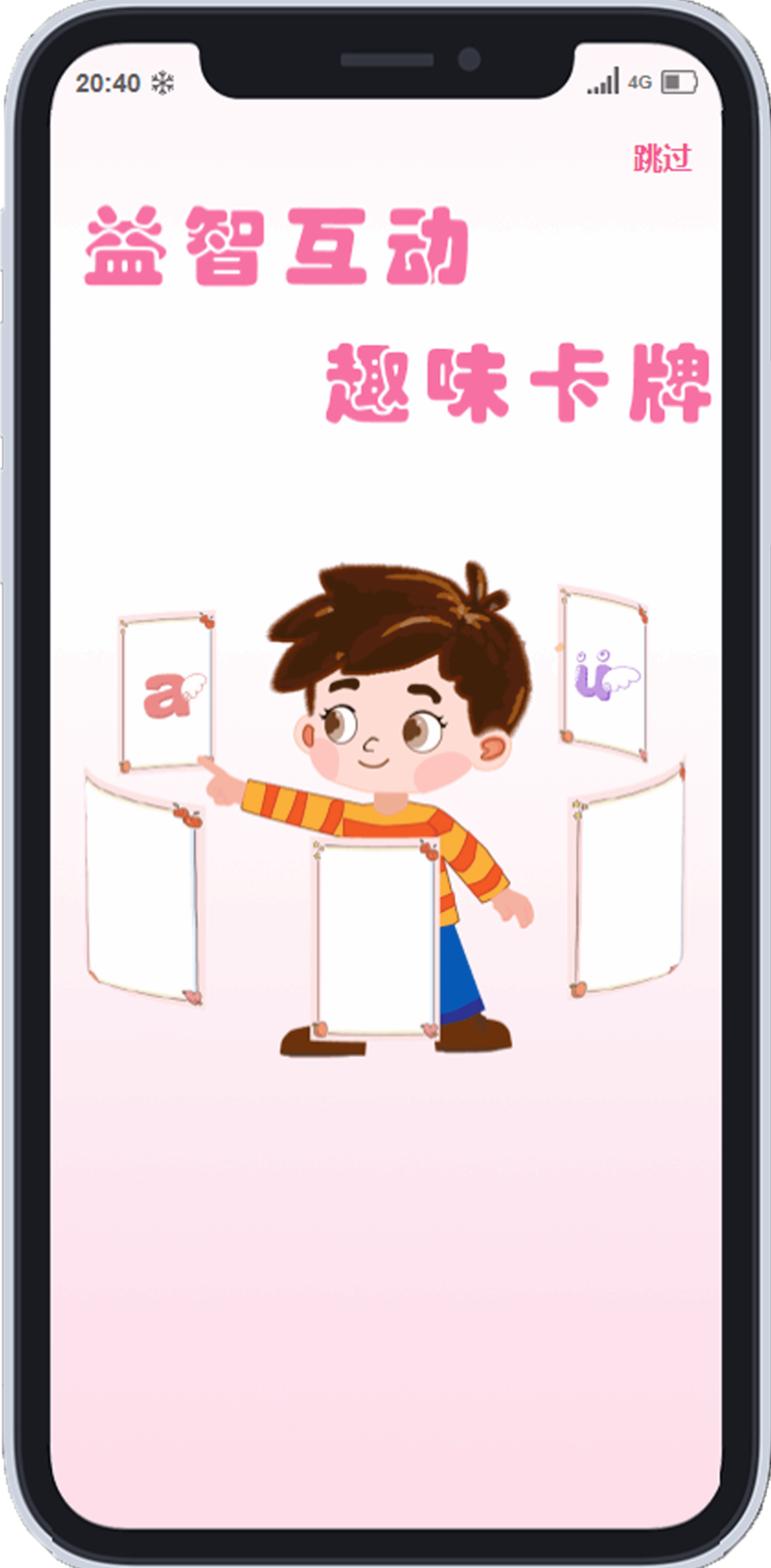 用户导向设计:贴合儿童认知规律,采用色彩鲜艳的视觉元素、简单易懂的操作逻辑,避免成人化设计。 APP 包含四大核心板块:首页、语趣课堂、知识绘本、个人中心。交互设计:实现多样化交互效果,如:启动页单击跳转、引导页左右滑动切换、游戏模块即时反馈,同时设计卡牌类游戏,将知识融入互动,强化学习趣味性。