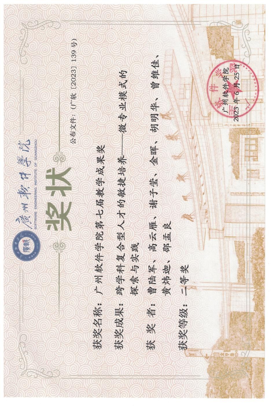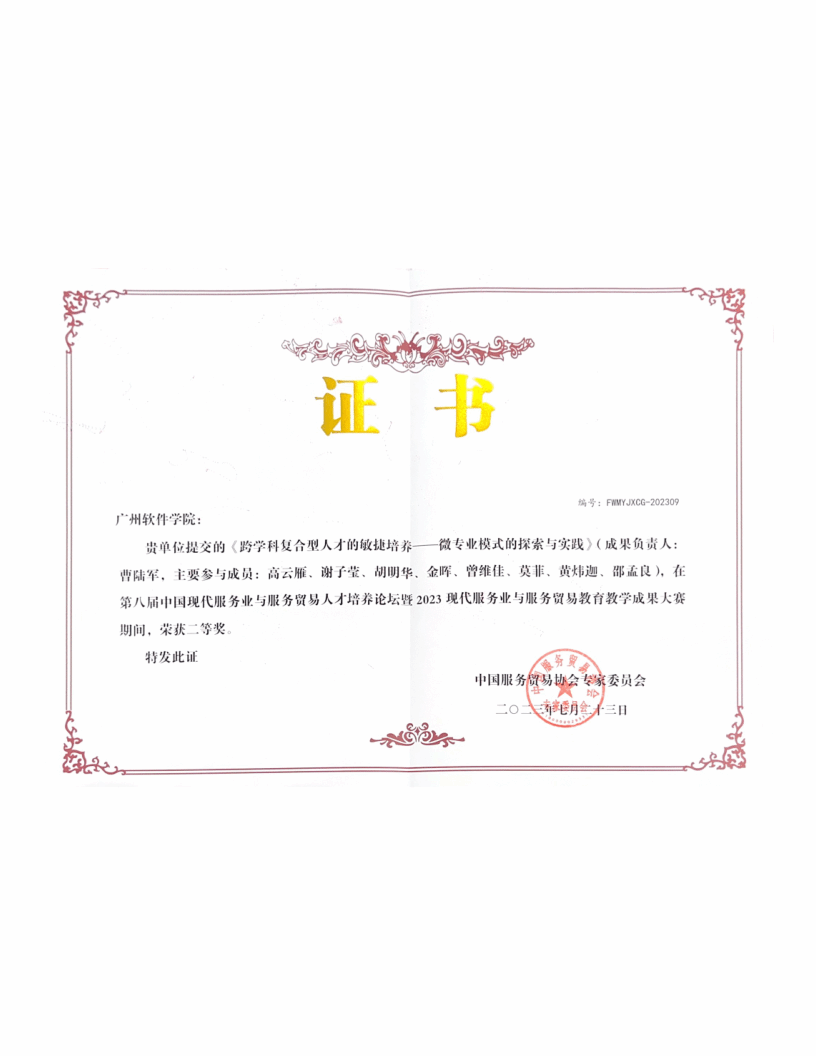 广州软件学院第七届教学成果奖二等奖