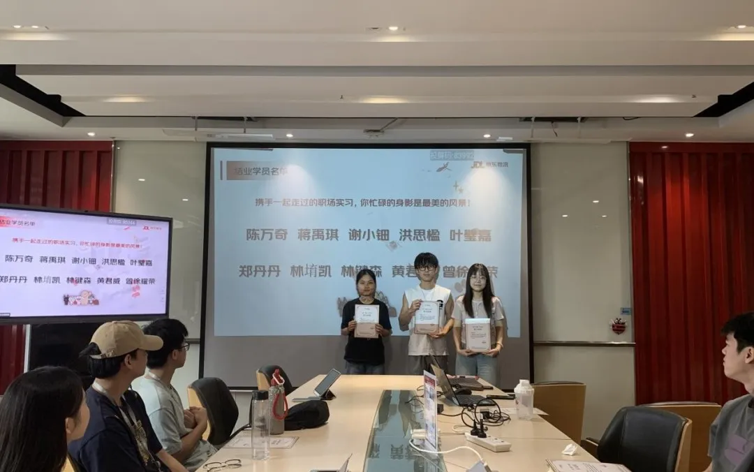 实训期间,学员们将课堂所学转化为实际岗位能力。在结业汇报环节,各小组通过PPT与视频Vlog等多种形式,自信展示其在京东各职能岗位中的实践成果。学生以专业知识为基础,针对真实业务场景与数据展开深入剖析,提出可行优化方案,充分体现出优良的理论应用能力和创新思维。