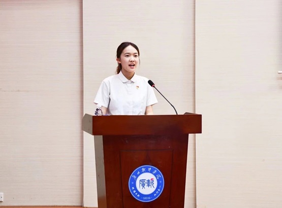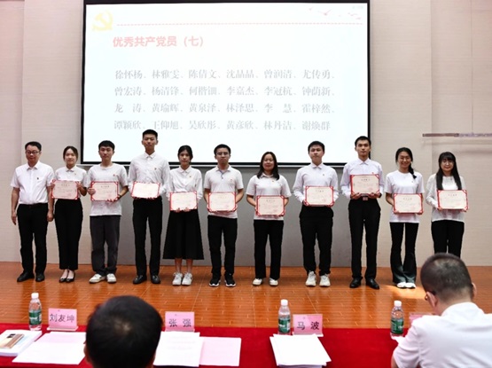 “始于初心,成于坚定。三年前的我,怀抱梦想,踏入了广软校门,怀着对中国共产党的憧憬,郑重地向党组织提交了入党申请书。后来,我光荣地成为了一名共产党员。我时刻牢记自己的党员身份,不断以严格的标准要求自我。”学生“优秀共产党员”代表,外语系霍梓然同学表示,作为新时代的优秀学生党员,一要信念坚定、对党忠诚。二要担当作为、甘于奉献。三要勤学苦练、增强本领。