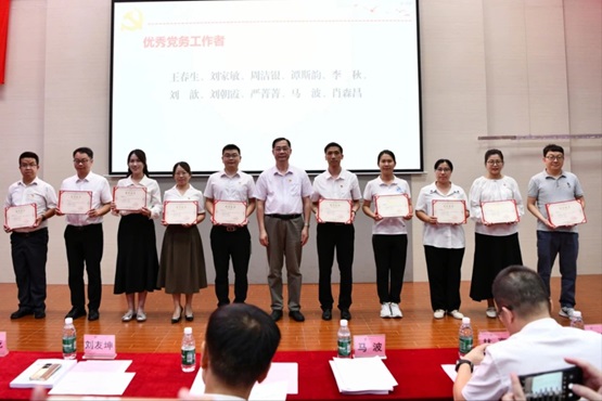 大会在雄壮的国歌声中拉开帷幕。校长张强宣读了《中共广州软件学院委员会关于表彰优秀共产党员、优秀党务工作者和先进基层党组织的决定》《关于公布2023年学校党建与思想政治教育论文评选结果的通知》文件。与会校领导、党委委员为获奖的先进集体和个人颁奖。