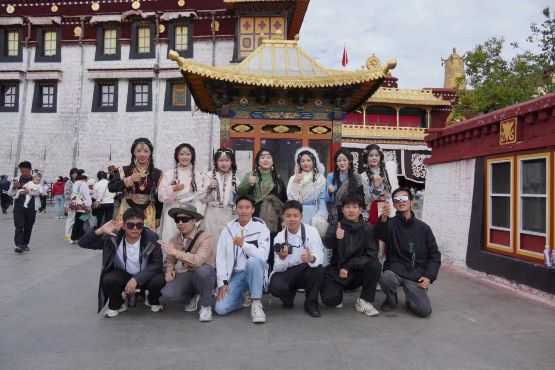 8月12日,项目组全体成员前往布达拉宫进行研学,深刻感受中华民族多元文化的璀璨交融。项目组成员带着对布达拉宫的敬仰之情参观学习,不仅了解到西藏传统文化的精髓,更深刻体会到了中华民族多元文化的交流与融合之美。