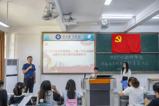 网络技术系党总支于9月19日召开专题学习会。我系教工党支部书记苏进胜同志领学,领学主题是“深入学习宣传贯彻党的二十届三中全会精神,为推进中国式现代化挺膺担当”。随后,党总支张卫香书记进行总结讲话。她强调党员要有责任与担当,希望全体党员强化理论学习,在日常生活、学习和工作中都要时刻发挥党员先锋模范作用。同时,要求全体党员要加强党纪学习,要严于律己。