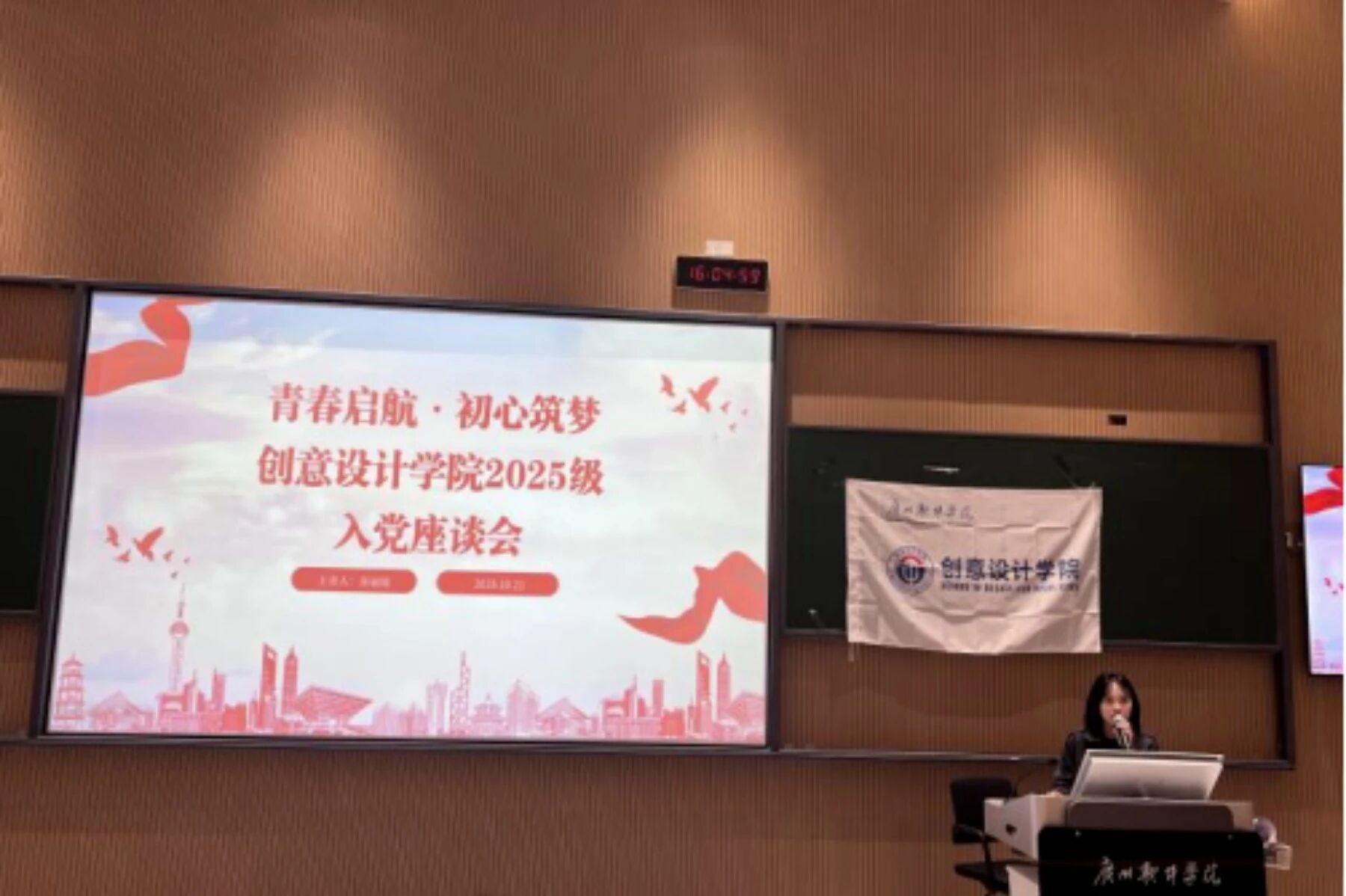 视觉传达设计专业大三学生、中共预备党员黄诗琪分享了自己的入党故事。从初心的萌芽到实践的锤炼,她以亲身经历诠释了“责任与担当”,并寄语学弟学妹:“以青春之我,筑梦新时代”,在专业学习与社会服务中践行初心。