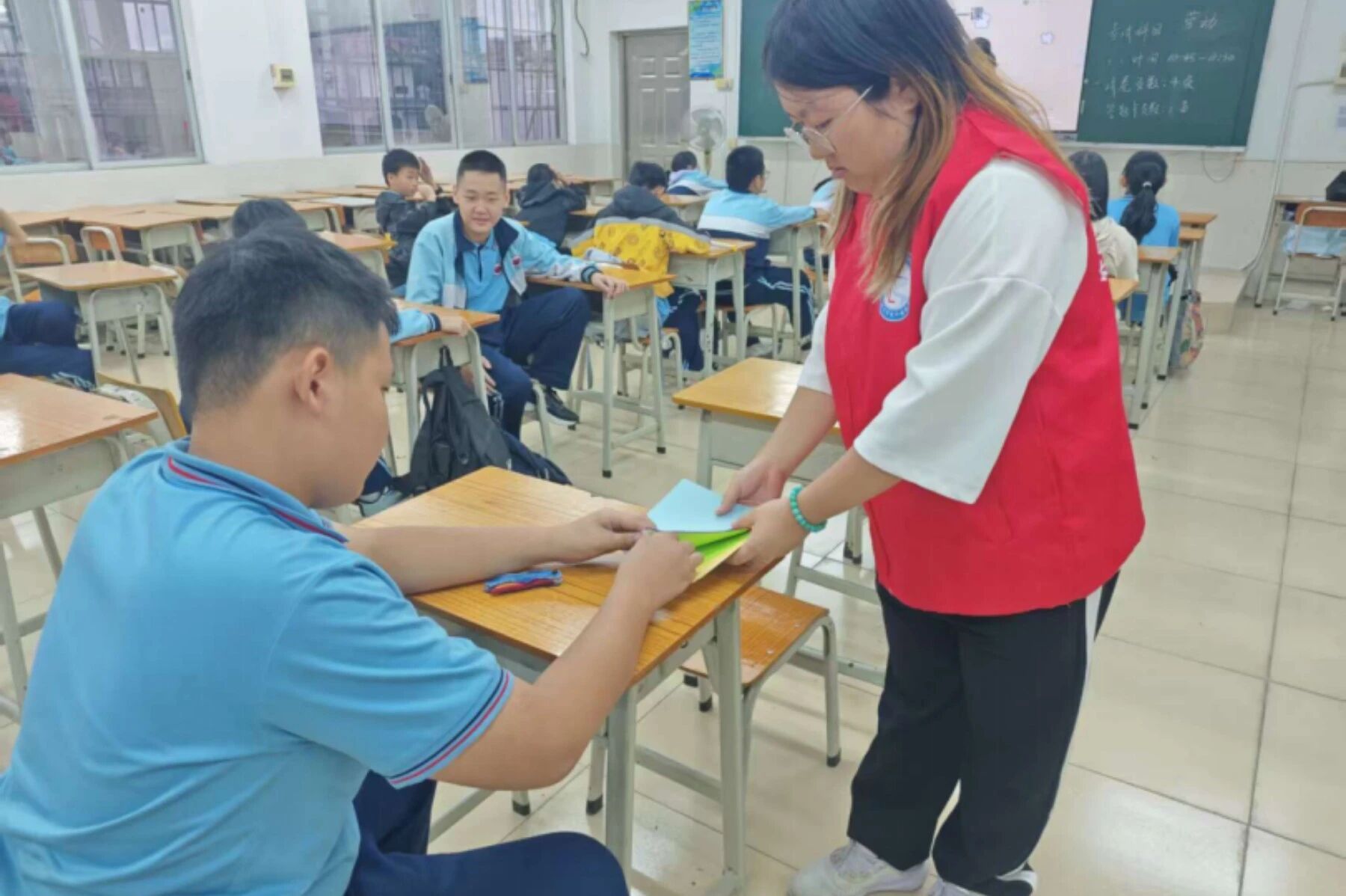 手工课上,小老师细致教授折纸技巧,同学们在折叠变换中锻炼动手能力,感受传统手工之乐。