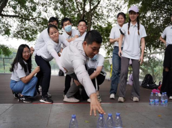 当天下午,研修班精心组织了一场团队心理辅导活动。通过一系列富有创意的游戏和互动环节,学员们得以亲身体验团队合作的重要性与技巧。在辅导师的悉心引导下,学员们分组参与了如“松鼠搬家”“农夫砍树”等富有挑战性的团队游戏。这些游戏不仅考验了学员们的团队协作和沟通能力,更让他们在轻松愉快的氛围中深刻感受到了信任、支持与合作的强大力量。