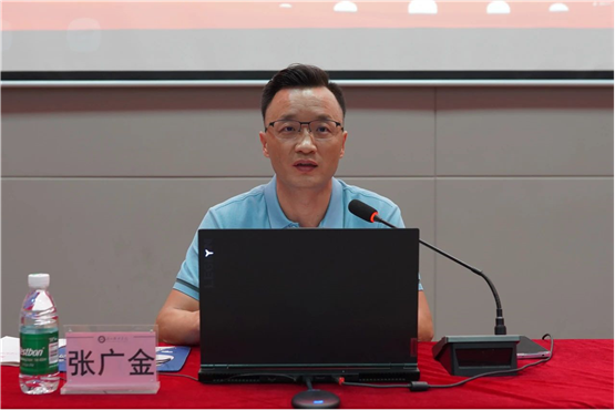 张广金以“《学习贯彻< 中国共产党纪律处分条例> 做讲党性、守党规、严党纪的时代新人》”为题,结合中国共产党百年奋斗的独特优势和宝贵经验,紧扣党中央关于党的纪律建设的总体要求,对《中国共产党纪律处分条例》(以下简称《条例》)的指导思想、主旨要义进行了深层解读,并围绕“聚焦新《条例》的重要意义”“学习新《条例》的内容解读”“抓好新《条例》的贯彻执行”三方面的内容,融会贯通有关案例,重点阐释了《条例》新修订内容的丰富内涵和实践要求。