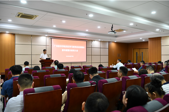 4月,该校党委召开党纪学习教育专题会议,落实省委教育工委的工作部署。会后,学校第一时间成立了以党委书记为组长的党纪学习教育领导小组,制定印发了《中共广州软件学院委员会党纪学习教育实施方案》,要求各级党组织把党纪学习教育作为重要政治任务抓紧抓实抓好。该校召开党纪学习教育启动部署会暨专题警示教育大会,全体校领导和中层领导干部参会。会议要求全校党员干部要提高站位,深化认识,深刻理解开展党纪学习教育的重大意义;要明确目标,突出重点,高标准高质量推动党纪学习教育深入开展;要强化领导,精心组织,以严的作风确保党纪学习教育取得实效。启动部署会后,学校各级党组织和全校党员干部迅速推动抓好落实,推动党纪学习教育在全校深入开展。