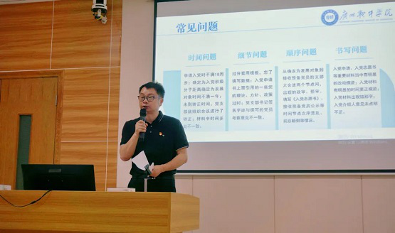党委组织部侯楣老师从党员发展工作流程、党员发展材料撰写、党员发展的常见问题三个方面,对基层党务干部进行了全面系统的培训。侯楣老师用流程图清晰地讲解了发展党员工作的5个阶段、25个步骤,特别对发展党员材料的规范填写和整理,做了全面系统的培训。此次培训采用理论和实际工作案例相结合的方式,以案例的形式阐释了党员发展工作过程当中出现的常见问题,包括时间、细节、顺序、书写问题等,使参加培训的党务干部对党员发展工作认识更加清晰。基层党务干部与党委组织部工作人员就发展党员工作中存在的实际问题进行了热烈的交流。