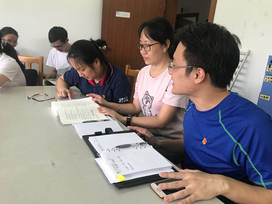 郑创兴、周玉芬、罗蕙学习小组积极开展学习讨论