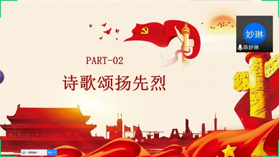 本次组织生活会,国贸系学生党支部开展了一次“颂扬先烈”的线上诗歌交流会。通过诗歌颂扬先烈的形式,来表达我们对先烈的崇敬之情。