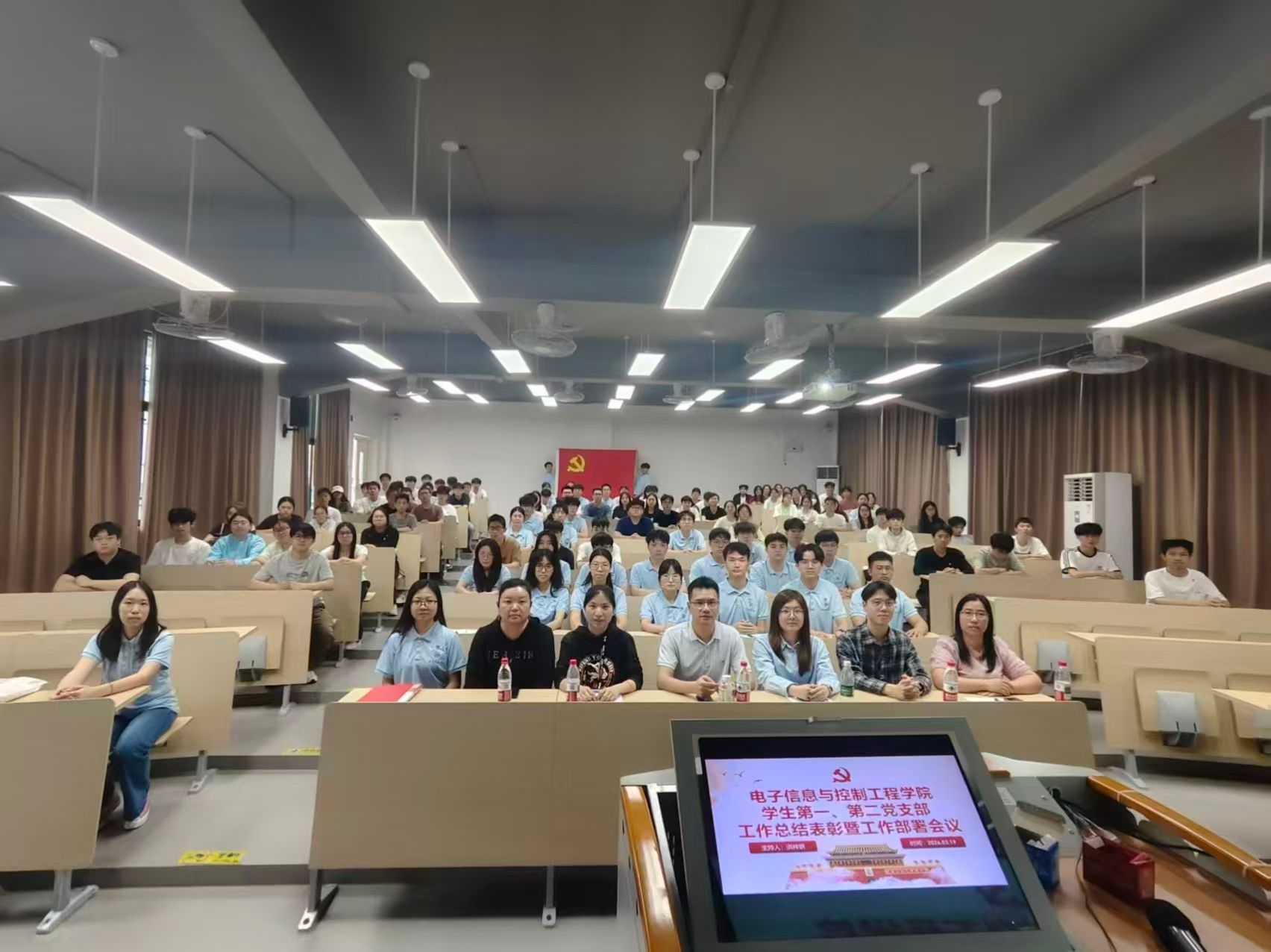 为进一步激励党员发挥先锋模范作用,保持党员队伍的先进性与创造性,我院学生第一、第二党支部,于2026年3月19日12:10在D101,召开电子信息与控制工程学院学生第一、第二党支部工作总结表彰暨工作部署会议,出席本次会议的有学院党委书记李应东、团委书记兼学生会秘书长潘英杰、团委兼职副书记谢春喜、学生第一党支部书记周洁银、学生第二党支部书记黄俞明以及各位党员同志。