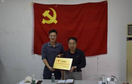 接下来是“三型党支部”的授牌仪式,在庄重的党旗下,宗建华主任庄重地接下此牌匾,李应东书记表示这不仅是一份荣誉,更是一份责任,激励我们向更高、更优秀的层次发展。