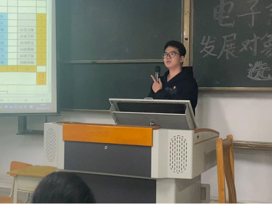 本网讯为加强党支部的建设,切实保证电子系学生第一党支部发展对象的质量,吸收优秀同志,进一步完善大学生党员队伍建设。2024年3月15日19:00,电子系学生第一党支部举行2024年上半年发展对象培训班推优考试。