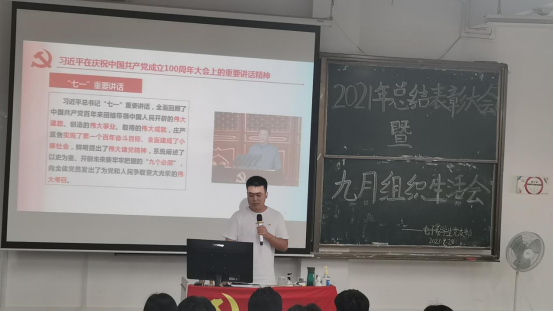 本网讯 为深入领会习近平总书记“七一”重要讲话,深入学习《中国共产党普通高等学校基层组织工作条例》。电子系学生党支部于2021年9月28日13:00在D101召开以“赓续百年路,书写新篇章”为主题的组织生活会。莅临本次会议的嘉宾有电子系学生党支部书记周洁银老师以及各位党员同志。