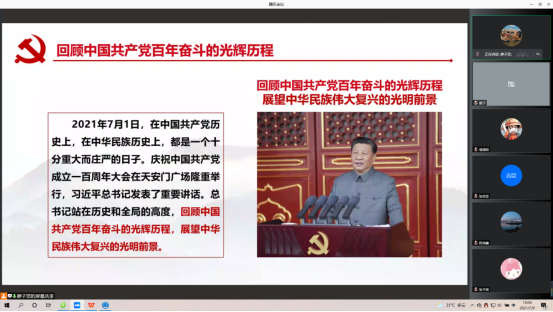 会议伊始,主持人介绍本次会议的流程。紧接着,全体起立,面向国旗,奏唱国歌。接下来,由廖子贤同志带领大家回顾党的光辉历程,并认真学习了习近平总书记在庆祝中国共产党成立100周年大会上的重要讲话。
