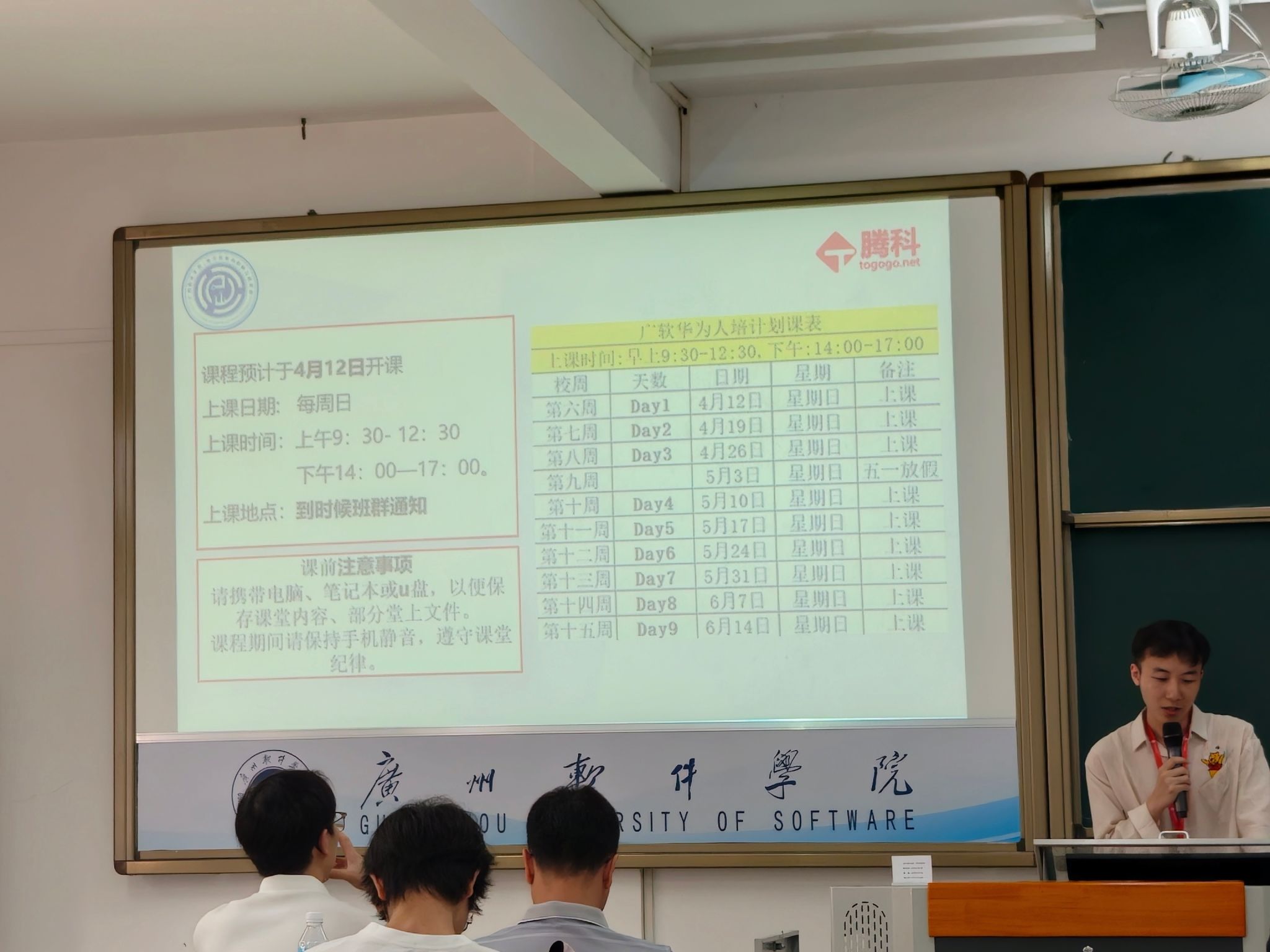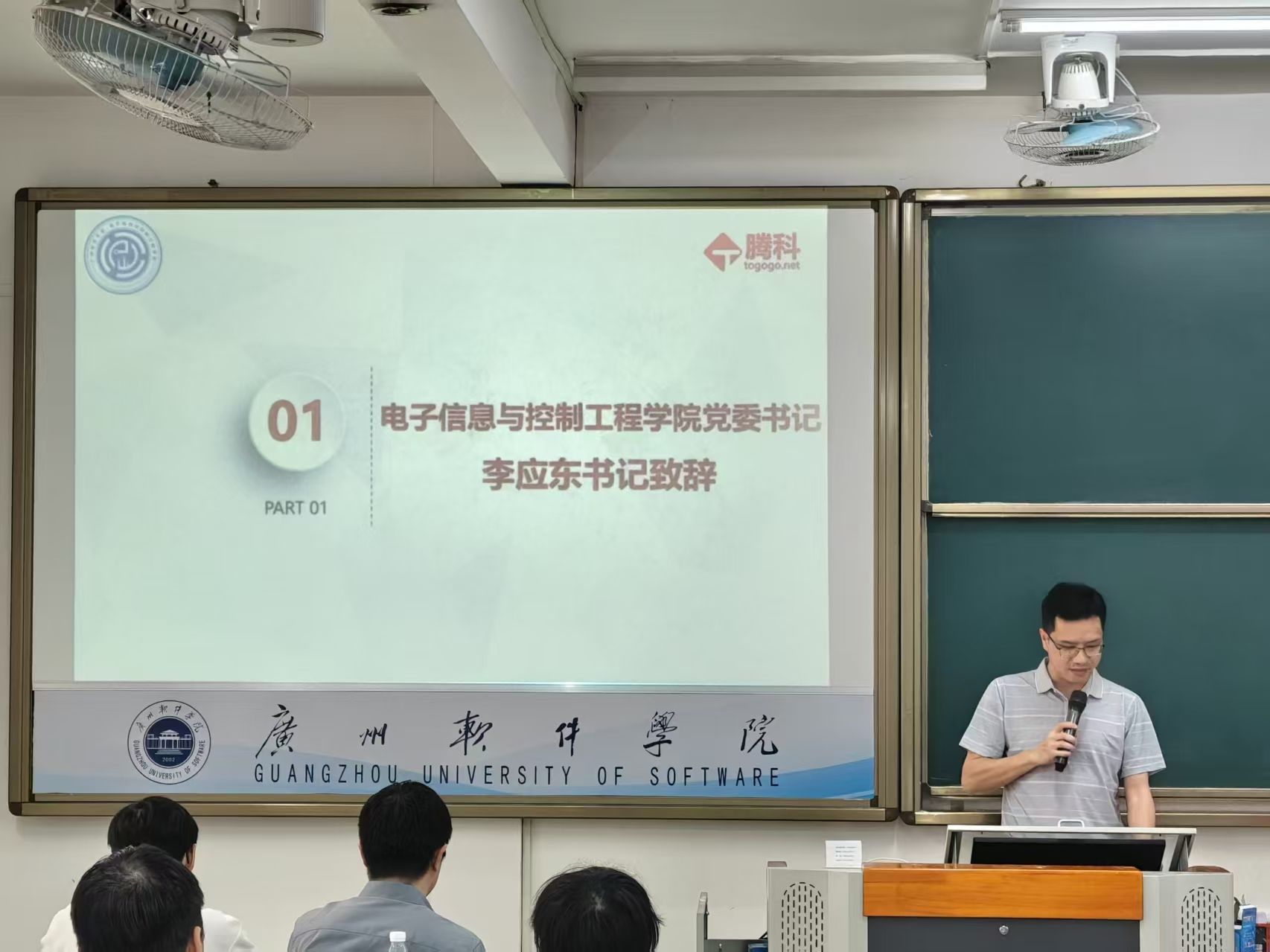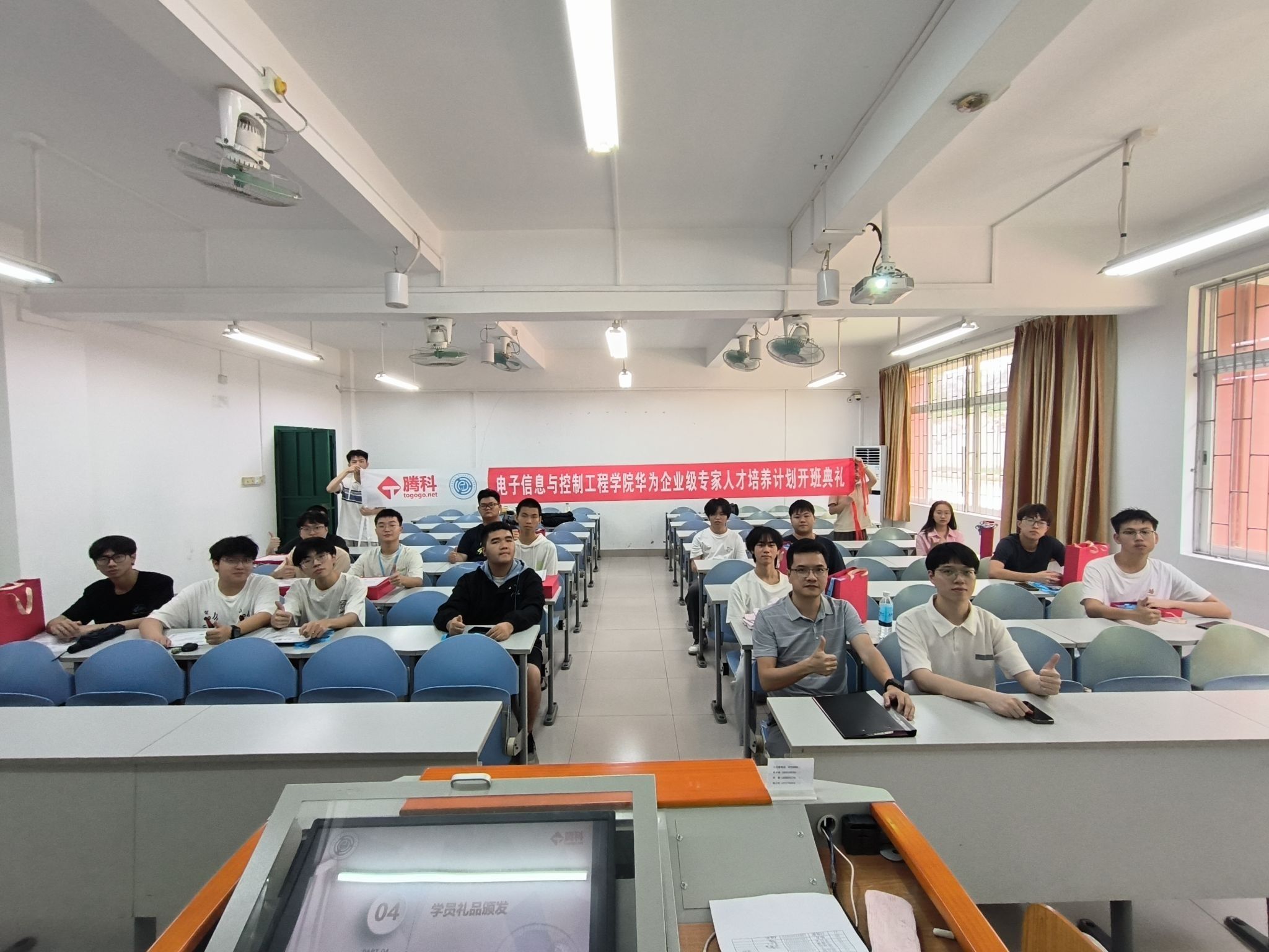本网讯 为深化产教融合,培育企业亟需的ICT高端技术人才,4月7日下午,广州软件学院2026华为企业级专家人才培养计划开班典礼在我校广州校区U101教室举行。我校电子信息与控制工程学院党委李应东书记、团委书记兼学生会秘书长潘英杰,以及广州腾科网络技术有限公司产教融合业务部渠道经理袁泽帆先生、产教融合质量发展部李东俊老师及全体学员齐聚一堂,共同见证这一崭新起点,开启技术进阶与职业成长的全新篇章。